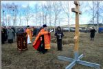 Протоиерей Андрей Дубровин читал молитвы из чина основания храма: «Благоволи, Господи Иисусе Христе Боже наш, силою Креста Твоего оградитися месту сему, в славу Тебе распятого Бога нашего…буди начало, умножение и совершение делу сему, ктиторов (спонсоров) и делателей благослови, и делу рук их поспеши, и все потребная к сооружению храма изобильно умножи, да будет храм совершен и полон твоей славы…». Протоиерей Сергий прочитал евангельское зачала на начало благих дел. По окончании чина был освещен крест, установленный на месте строительства храма. Затем отец Андрей произнес краткую проповедь: