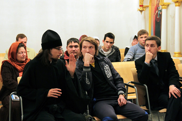 Руководитель исполкома Алексей Белодуров в своем выступлении предложил ребятам подумать, как совместно провести предстоящий праздник Дня народного единства, который совпадает с праздником Казанской иконы Божией Матери. Также Алексей Юрьевич предложил организовать массовый субботник с участием православного актива, школьников и студентов города, а также работников строительных организаций в храме Казанско-Богородицкого монастыря на территории СИЗО № 3, который в скором времени вернут Церкви.