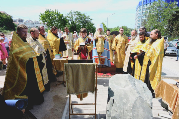Торжественное богослужение и непосредственно закладку совершил, в сослужении Севастопольского духовенства, митрополит Симферопольский и Крымский Лазарь.