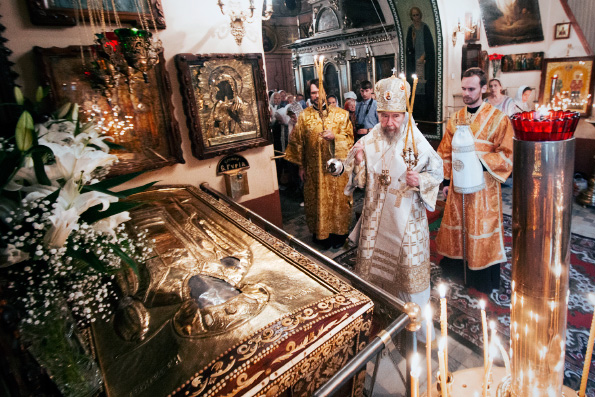 — Здесь было немало святынь, и святитель Гурий спас их от осквернения, они не попали в руки нечестивцев. Сейчас перед этими образами вновь молятся верующие, а большая часть святынь до сих пор хранится в этом святом храме. Мы верим, что он сохраняет внутренний душевный мир верующего человека, Церковь нашу — жилище Святого Духа. Пусть святитель Гурий помогает нам во всех бедах и нуждах, охраняет Церковь Православную от врагов видимых и невидимых, а мы, скромные ее чада, благодарно склоняем свои колена перед святыми мощами святителя Гурия и молим его о том, чтобы он всегда пребывал с нами в молитвенном единении и возносил свои ходатайства за нас, грешных, к Престолу Божьему, — сказал владыка.