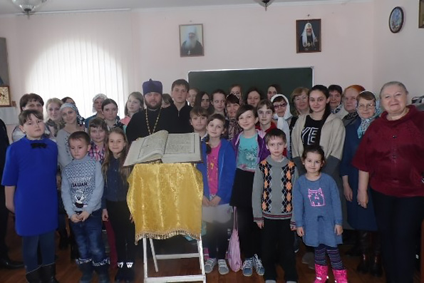 13 марта в воскресной школе «Ковчег» при храме преподобной Ксении Римляныни города Мамадыша состоялся праздник «День православной книги». Кроме детей и взрослых, слушателей воскресной школы, на мероприятии были приглашены учащиеся профессионального лицея.