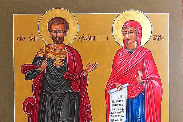 Вместо этого сына женили. На ком? Конечно, на язычнице. Красавица Дария служила жрицей Афины Паллады. Но... Сердце её было открыто к Божественной благодати. И вспыхнуло, как сухая солома, когда молодой супруг Хрисанф проповедал жене радостную весть — Евангелие.