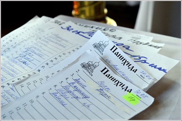 В записках о упокоении — имена длинным столбиком. И за каждым именем — человек со своей судьбой, со своей борьбой, счастьем и трагедией. Тяжело было расставаться с родным, ушедшим в вечность, невыносимо. Но по признанию многих людей, именно тогда, в тот печальный период их жизни, они обретали веру и приходили к Богу. Ведь по Своей любви Господь в скорбные минуты нашей жизни как никогда к нам близок. А у Бога, как известно, все живы и, как когда-то связывала кровь, теперь с почившим родственником нас роднит молитва. Это ощутимо на панихиде — молитва успокаивает сердце, соскучившееся по родному человеку. «Словно повидался с ним», — говорят некоторые.