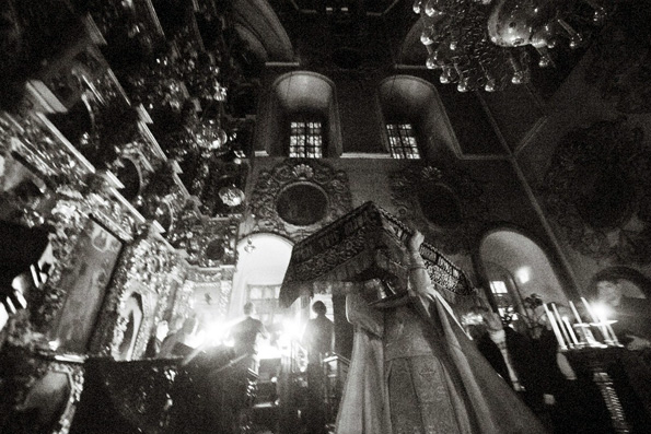 Если в храме только один священник, то на пеленах иконы Воскресения Христова и Евангелие несут миряне.