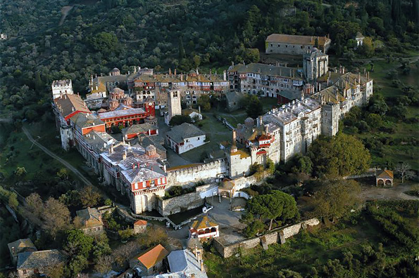 Следующая пристань — Григориат. Обитель была основана в XIV столетии преподобным Григорием Синаитом и его учениками. В монастырском соборе хранится чудотворная икона Божией Матери Галактотрофуса («Млекопитательница»).