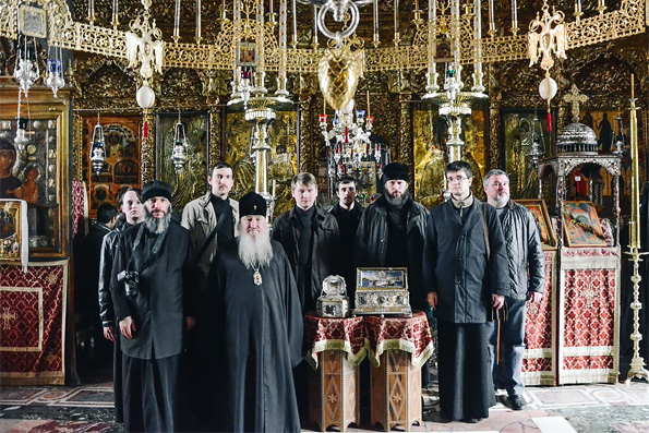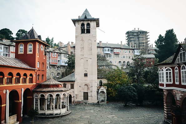 В главном соборе, освященном в честь Благовещения Пресвятой Богородицы, приложились к Поясу Божией Матери, чудотворной иконе «Всецарица», честным главам святителей Иоанна Златоуста и Григория Богослова. Для нас открыли часовню Богоматери «Утешение», а затем пригласили в уютный архондарик, где по святогорской традиции угостили чаем, узой и рахат-лукумом.