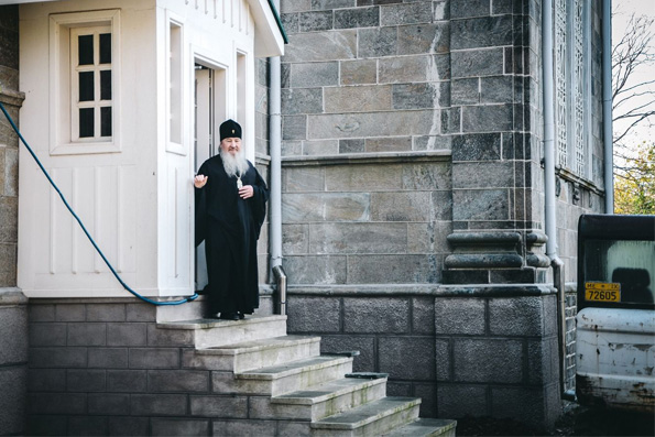 Мы позвонили в колокол перед входом в келью. К нам вышел подвизающийся здесь русский монах Алексий. Он попросил дать ему несколько минут, чтобы закончить молитвенное правило, после чего оказал нам гостеприимство, затопил печь и вскипятил воду.