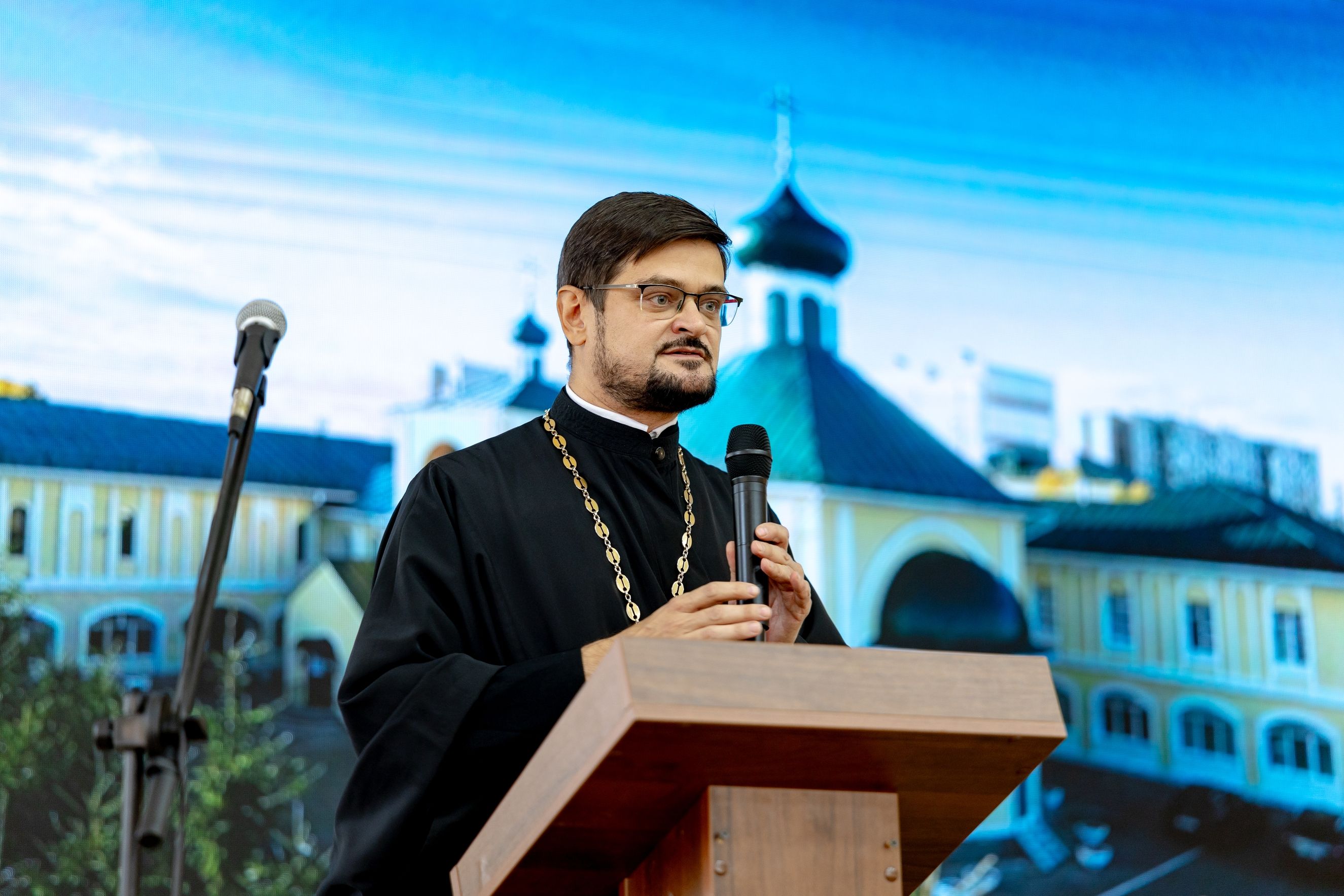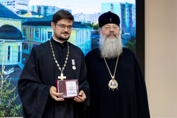 В завершение владыка Кирилл поблагодарил представителя Отдела внешних церковных связей за выступление и вручил отцу Стефану медаль святителя Гурия Казанского II степени.