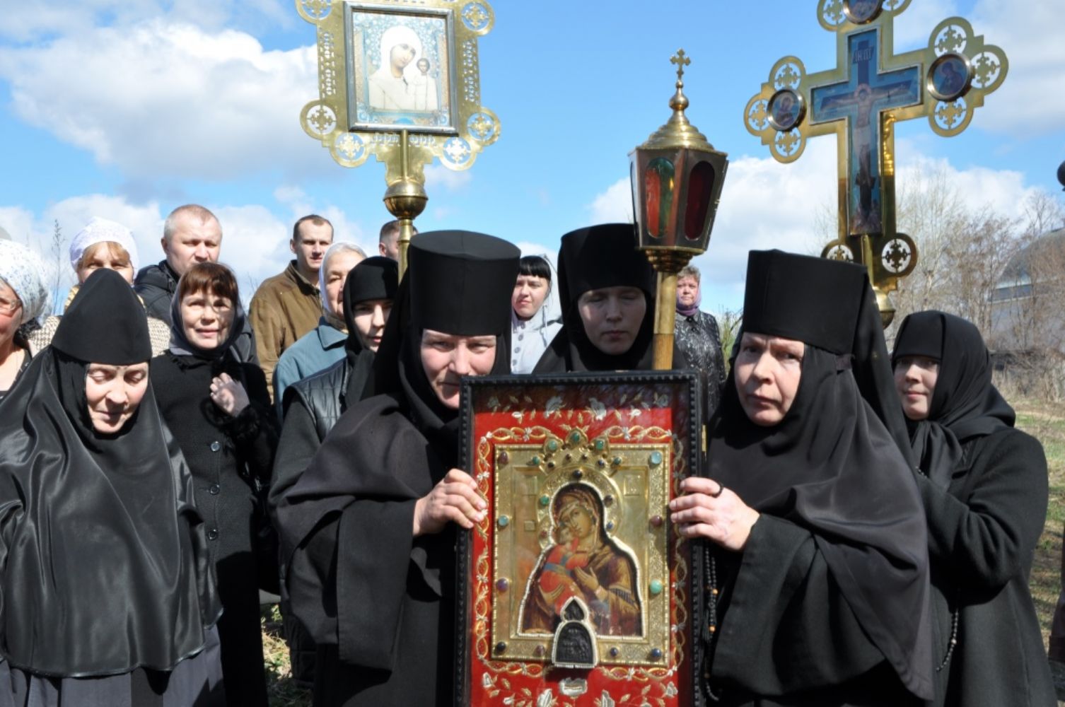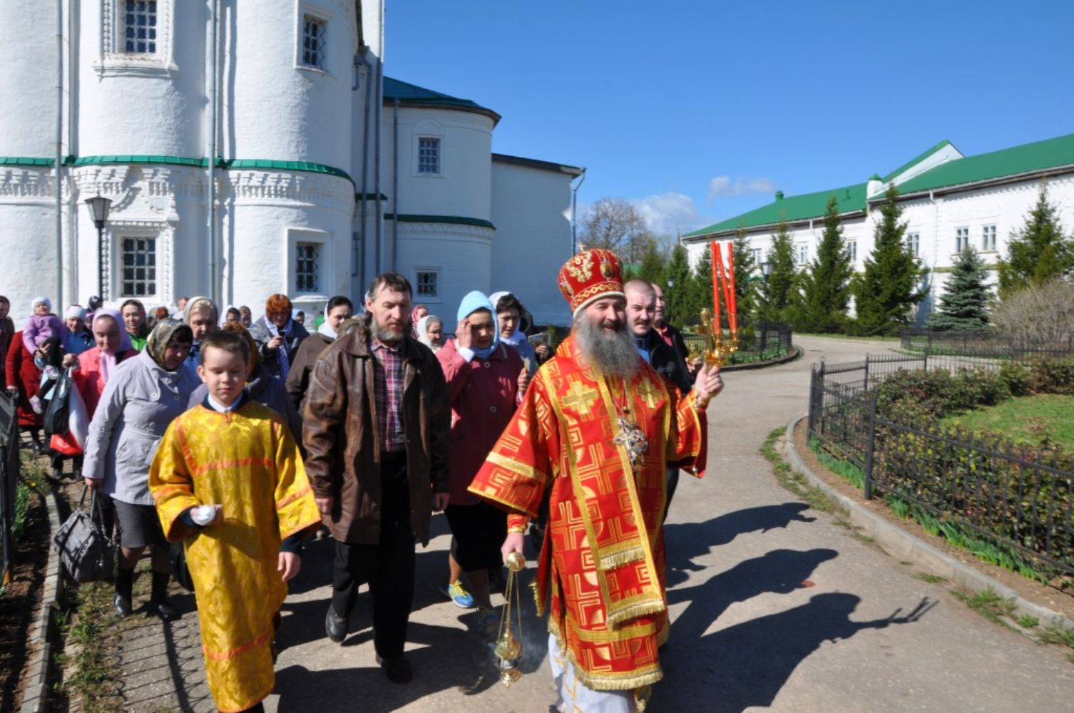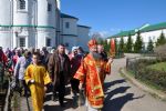 На малом входе владыка Иоанн наградил иерея Алексия Михайлова саном протоиерея. По окончании Литургии по традиции был совершен крестный ход на источник, расположенный недалеко от обители, на месте, где случилось явление чудотворного образа Пресвятой Богородицы со святыми женами мироносицами в 1647 году.