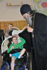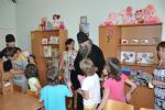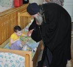 Владыка посетил каждую группу детей — дарил сладкие подарки, уделял особое внимание каждому ребенку, задавал вопросы на пасхальную тематику, всех поздравил с праздником. Так же он посетил молитвенную комнату, где вместе с сестрами милосердия были спеты пасхальные песнопения.