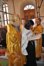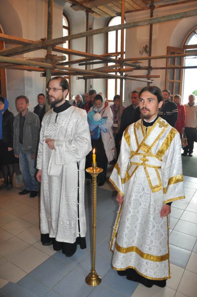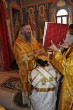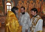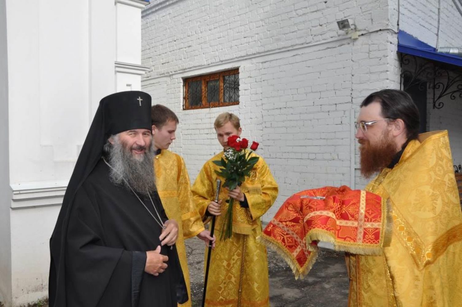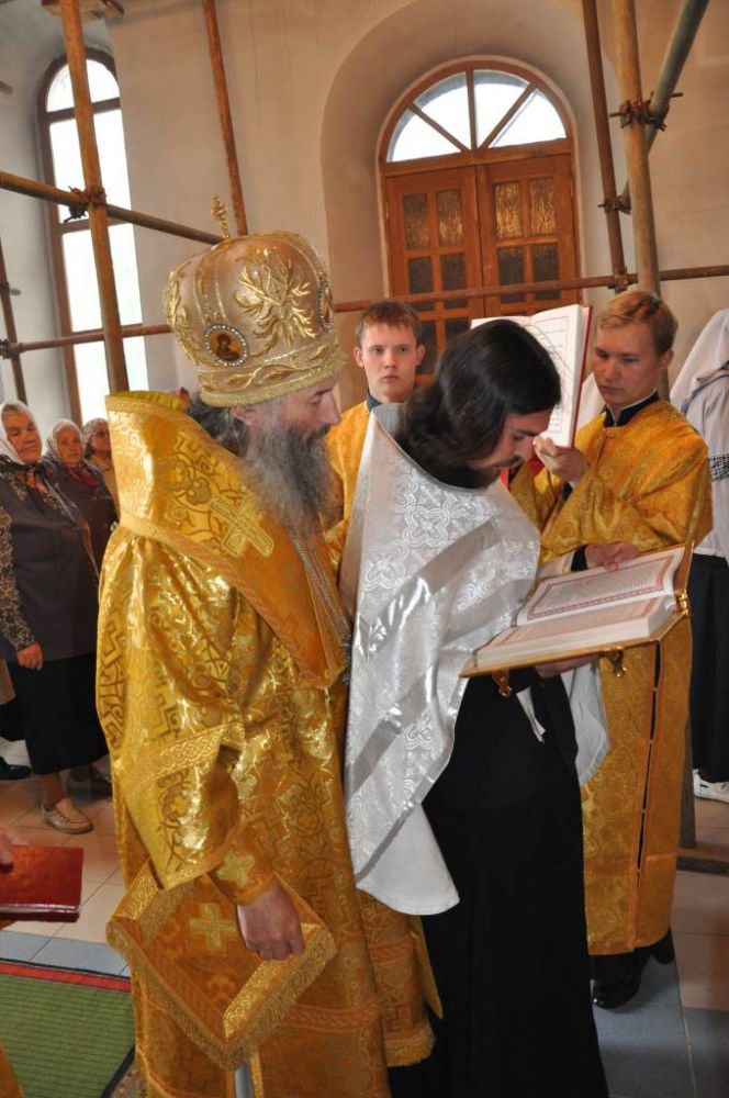 Владыке сослужил настоятель храма Рождества Пресвятой Богородицы с. Семеновка протоиерей Михаил Ильин. За литургией были совершены 2 хиротонии в священные степени. После «Херувимской песни» в сан иерея был рукоположен клирик храма Рождества Пресвятой Богородицы с. Семеновка диакон Григорий Михалев. После Евхаристического канона в диаконский сан был рукоположен пономарь Воскресенского собора г. Йошкар-Олы Евгений Симаков. Диакон Евгений обучается во Владимирской Духовной семинарии.