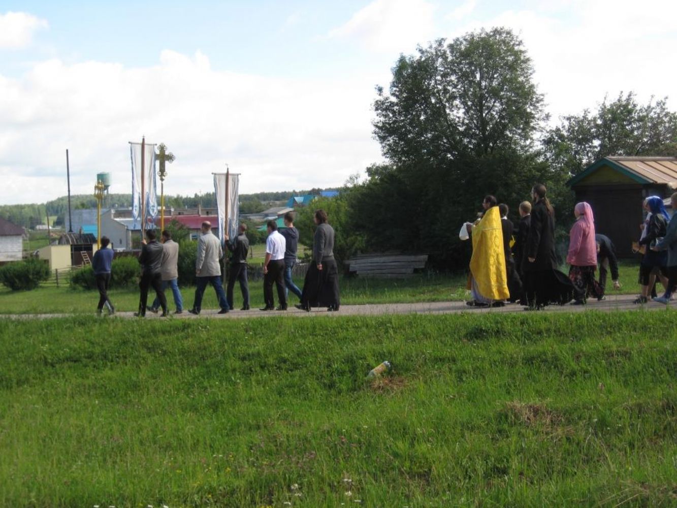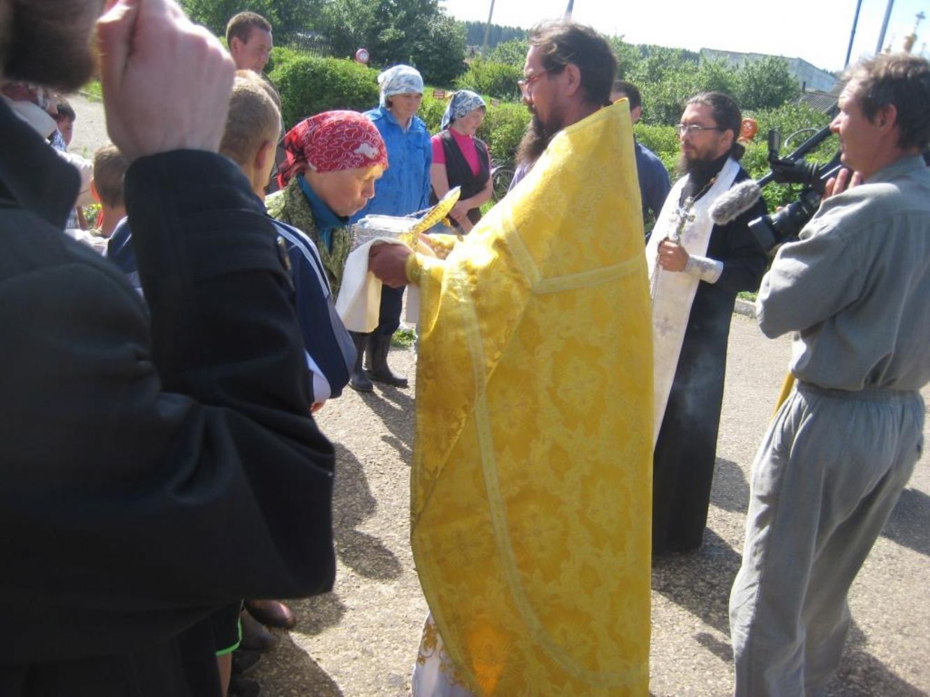 На следующий день были совершены Божественная литургия на марийском языке, молебен святителю Николаю с водоосвящением и крестный ход по деревне. Богослужения совершили помощник благочинного Северного округа по миссионерскому служению протоиерей Сергий Бажанов и настоятель Никольского храма с. Косолапово протоиерей Александр Милютин. На богослужениях пел миссионерский хор епархии под управлением диакона Игоря Коваля. По окончании крестного хода к молящимся обратился протоиерей Александр Милютин. В своем слове батюшка отметил значимость совершения подобных выездных богослужений с принесением святынь в поселения, отдаленные от храмов, а также увещал держаться Православной веры.