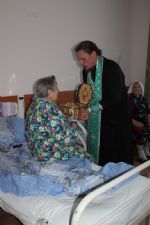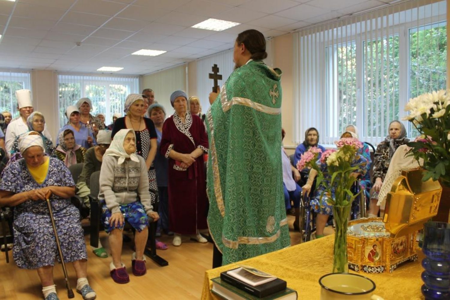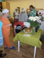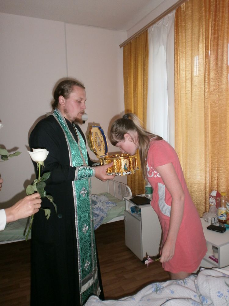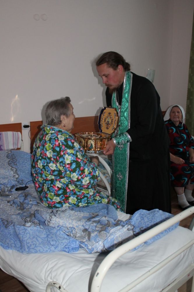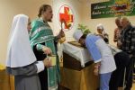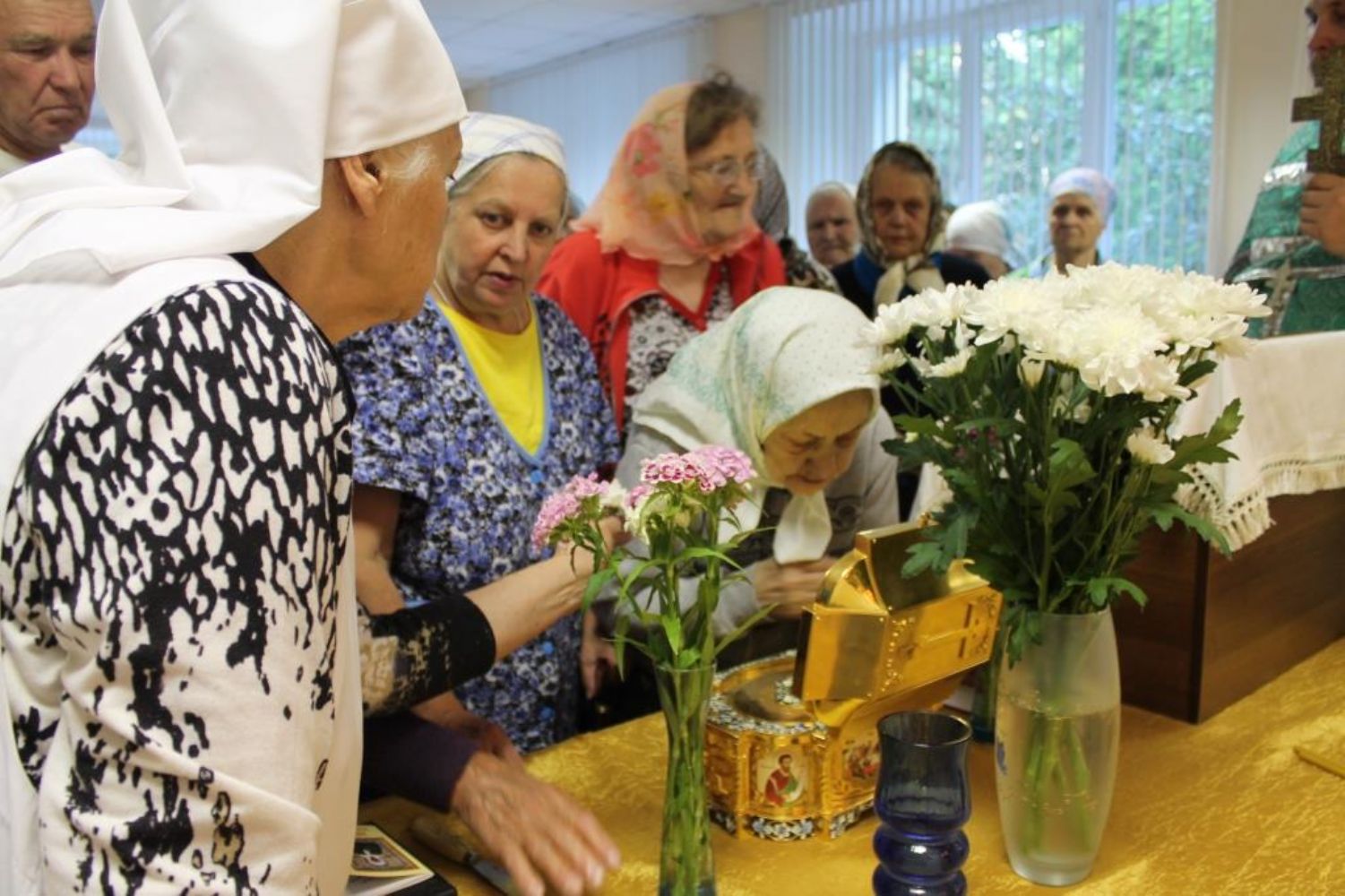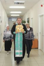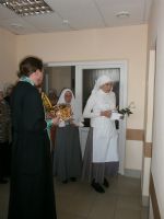 Медперсонал и пациенты в назначенное время терпеливо ожидали прибытия святых мощей, чтобы соборно помолиться и попросить помощи у блаженной. По окончании молебна присутствующие приложились к святыне. Окропив всех святой водой, отец Константин обратился с духовным напутствием к молящимся. Завершая краткую проповедь, батюшка привел в пример отношение к жизни и болезни самой Матронушки и пожелал всем болящим любви, терпения, упования на милость Божию и не забывать за все благодарить Господа.