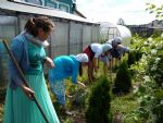 Мальчики первой смены подносили песок и кирпичи для восстановления заброшенного гаража. Сейчас здание уже готово к использованию. После послушания дети, как правило, играют, обедают, занимаются в кружках по интересам, участвуют в мероприятиях. В 14.30 их день заканчивается опять же молитвой и линейкой, на которой подводятся итоги минувшего дня. Хотелось бы отметить, что деньги на содержание никто не выделяет — все за счет пожертвований.