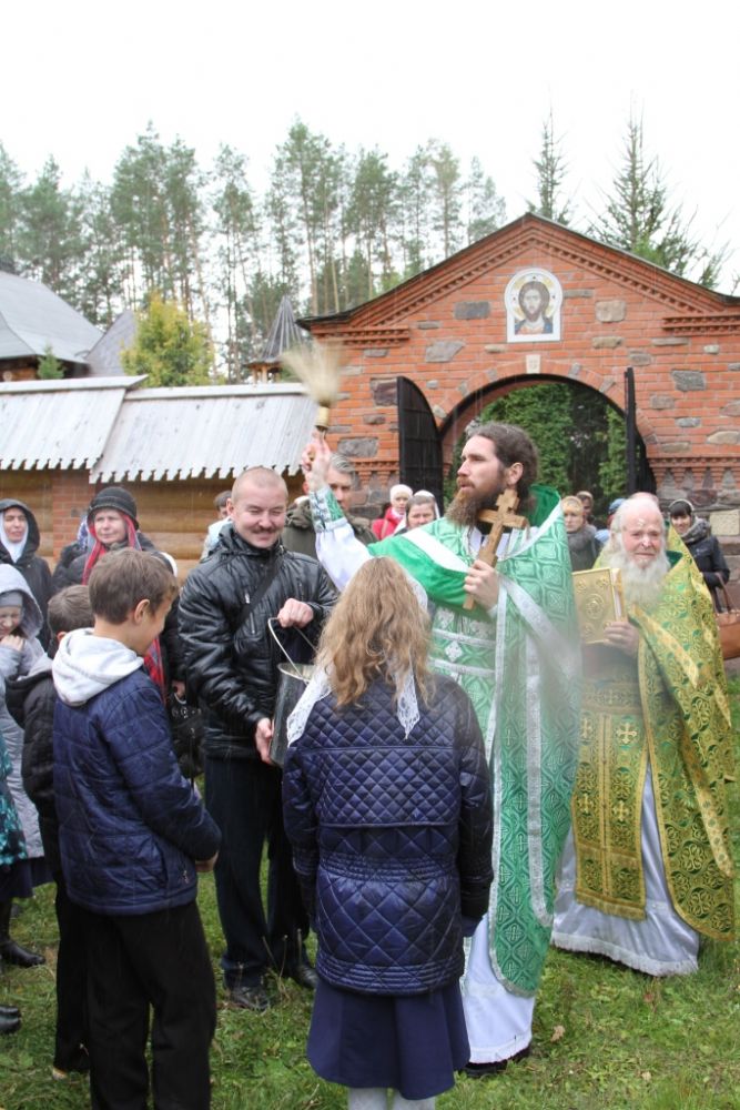 После Божественной литургии состоялся молебен с крестным ходом на реку Студенку. Вместе с духовенством молитвы возносили многочисленные миряне, приехавшие на престольный праздник в обитель со всех концов Республики, а так же первоклассники гимназии преподобного Сергия Радонежского г. Йошкар-Олы. Уже 14 раз посвящение первоклашек проходит здесь — в обители преподобного Сергия Радонежского, и этот год не стал исключением.
