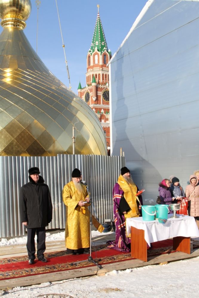В понедельник, 27 октября, произошло знаменательное событие в жизни Йошкар-Олинской и Марийской епархии. Были освящены купола с крестами для строящегося кафедрального собора в честь Благовещения Пресвятой Богородицы г. Йошкар-Олы.