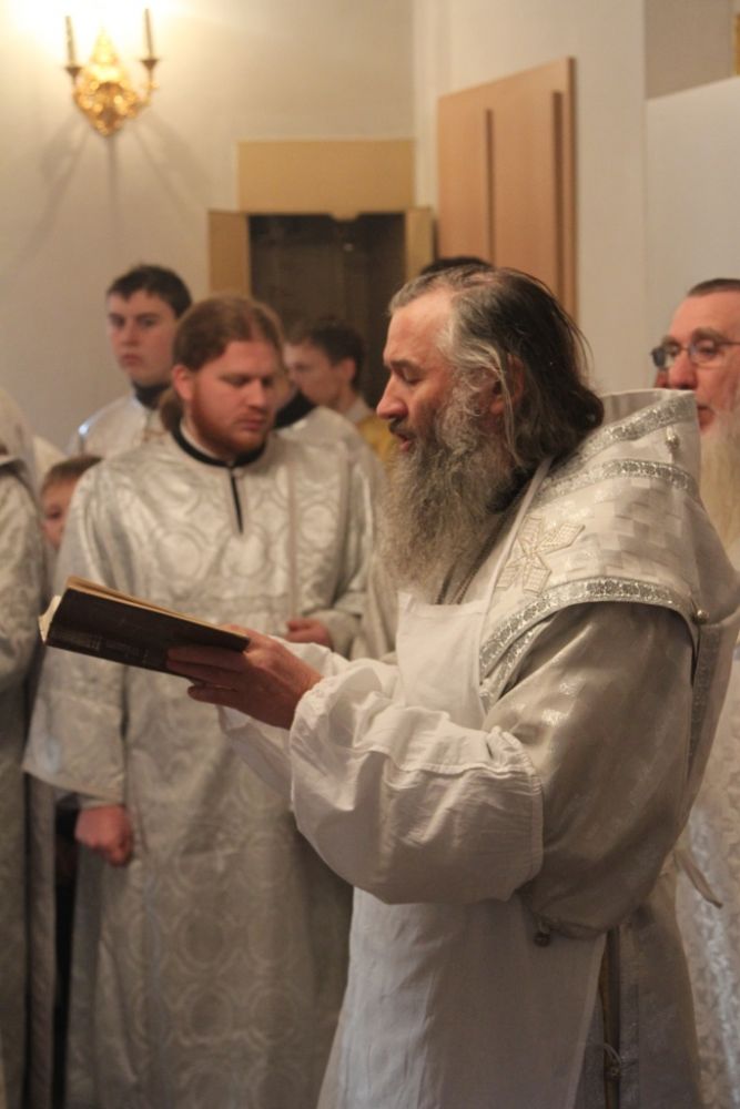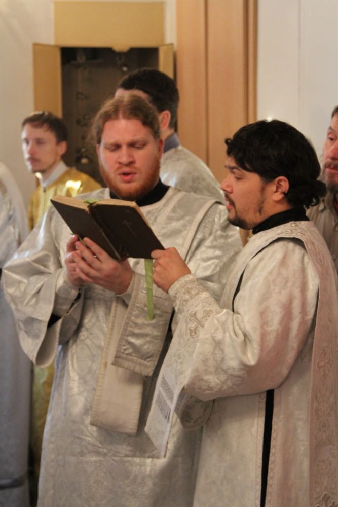 Сослужили Владыке настоятель Воскресенского собора протоиерей Сергий Поглазов и его клирики: иерей Леонид Вылекжанин и иерей Алексий Кирюшкин, благочинный Йошкар-Олинского церковного округа, настоятель Вознесенского собора протоиерей Евгений Кутырев, клирик собора иерей Иоанн Кристев, благочинный Пригородного церковного округа, настоятель храма Казанской иконы Божией Матери с. Нурма иерей Александр Коваль, настоятель храма в честь великомученика Пантелеимона г. Йошкар-Олы иерей Михаил Горицкий, настоятель храма Рождества Иоанна Предтечи п. Оршанка иерей Димитрий Вылекжанин.