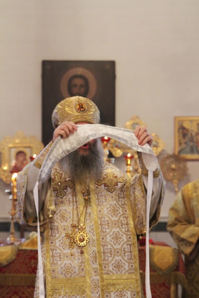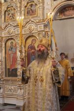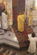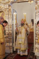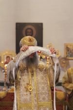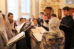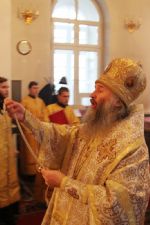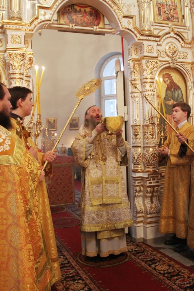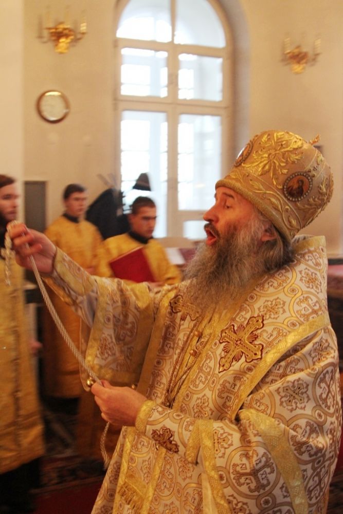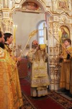 За литургией Владыке сослужили настоятель собора протоиерей Сергий Поглазов и гости из Казанской митрополии протоиерей Александр Качаев и священник Владимир Борков. Особенностью богослужения стало то, что оно совершалось в сопровождении трех хоров: хора Воскресенского собора, детско-юношеского хора «Благовест» и смешанного хора Казанской Духовной семинарии и регентских курсов.