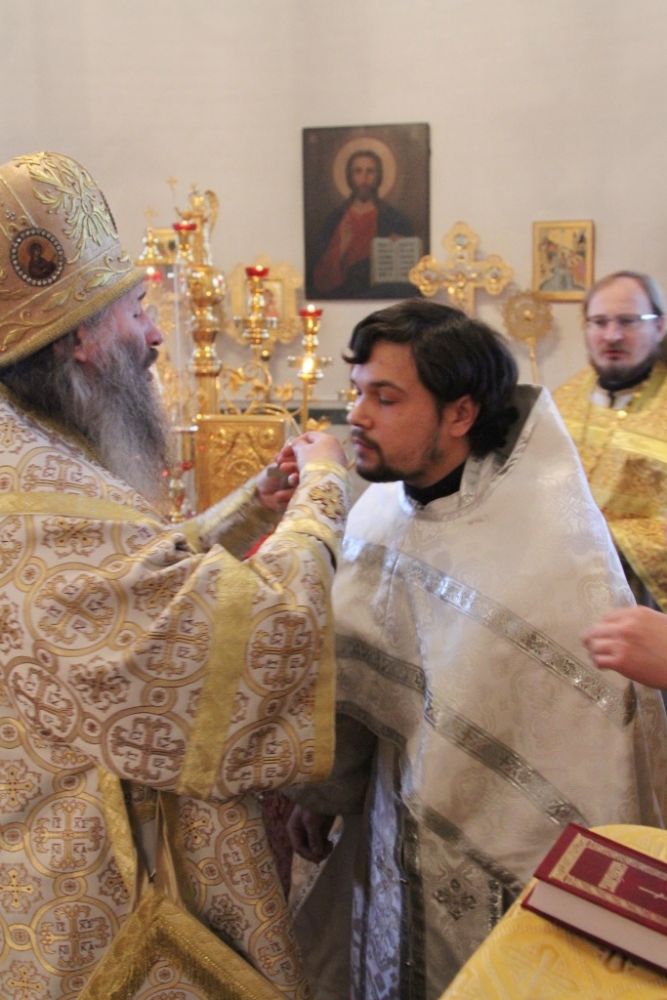 После «Херувимской песни» в сан иерея был рукоположен клирик Воскресенского собора г. Йошкар-Олы диакон Никифор Захаров. После Евхаристического канона в диаконский сан был рукоположен Евгений Самойлов, выпускник Московской Духовной семинарии.