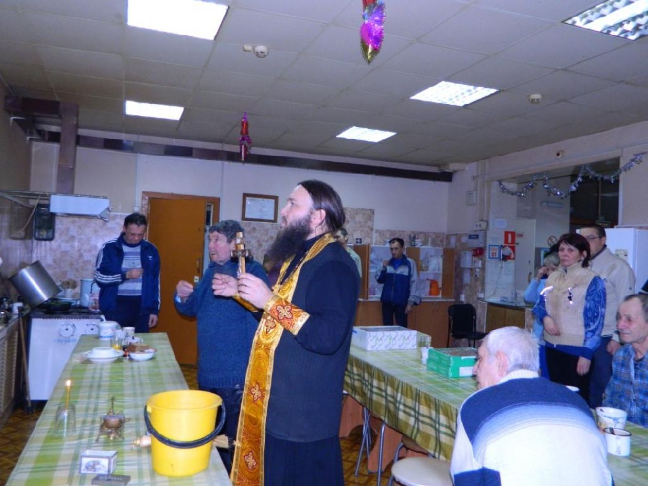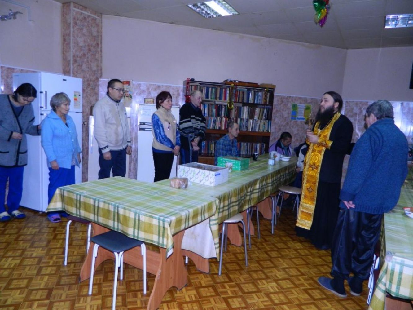 Сотрудники отдела социального служения и церковной благотворительности Йошкар-Олинской и Марийской епархии в праздник Крещения Господня провели акцию и посетили «Дом ночного пребывания». Настоятель церкви Сретения Господня села Кучка Алексий Вязов совершил освящение здания и окропил крещенской водой работников и живущих здесь бездомных людей. Для укрепления в вере и надежды на лучшее будущее священником были сказаны слова утешения, всем присутствующим были розданы нательные крестики и вручены сладкие подарки.