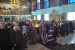 По окончании Литургии был совершен молебен 40 мученикам Севастийским. 22 марта свой день ангела отмечал клирик храма протоиерей Валерий Федоров. Владыка поздравил его и подарил икону Божией матери «Казанская» и просфору.