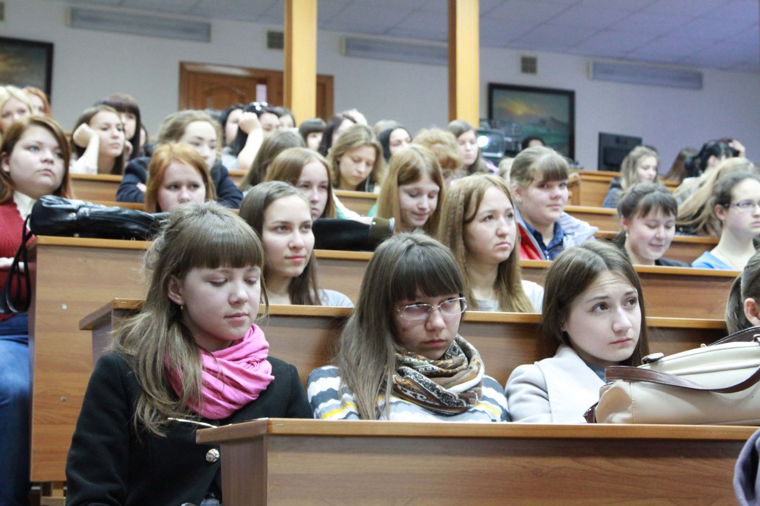 В конференц–зале собралась только женская аудитория – студентки финансово-экономического отделения техникума, к которой обратилась главный акушер-гинеколог РМЭ. Ольга Петровна рассмотрела некоторые вопросы репродуктивного здоровья и рассказала о сегодняшней демографической ситуации в стране, а так же о влиянии вредных привычек на здоровье будущих родителей.