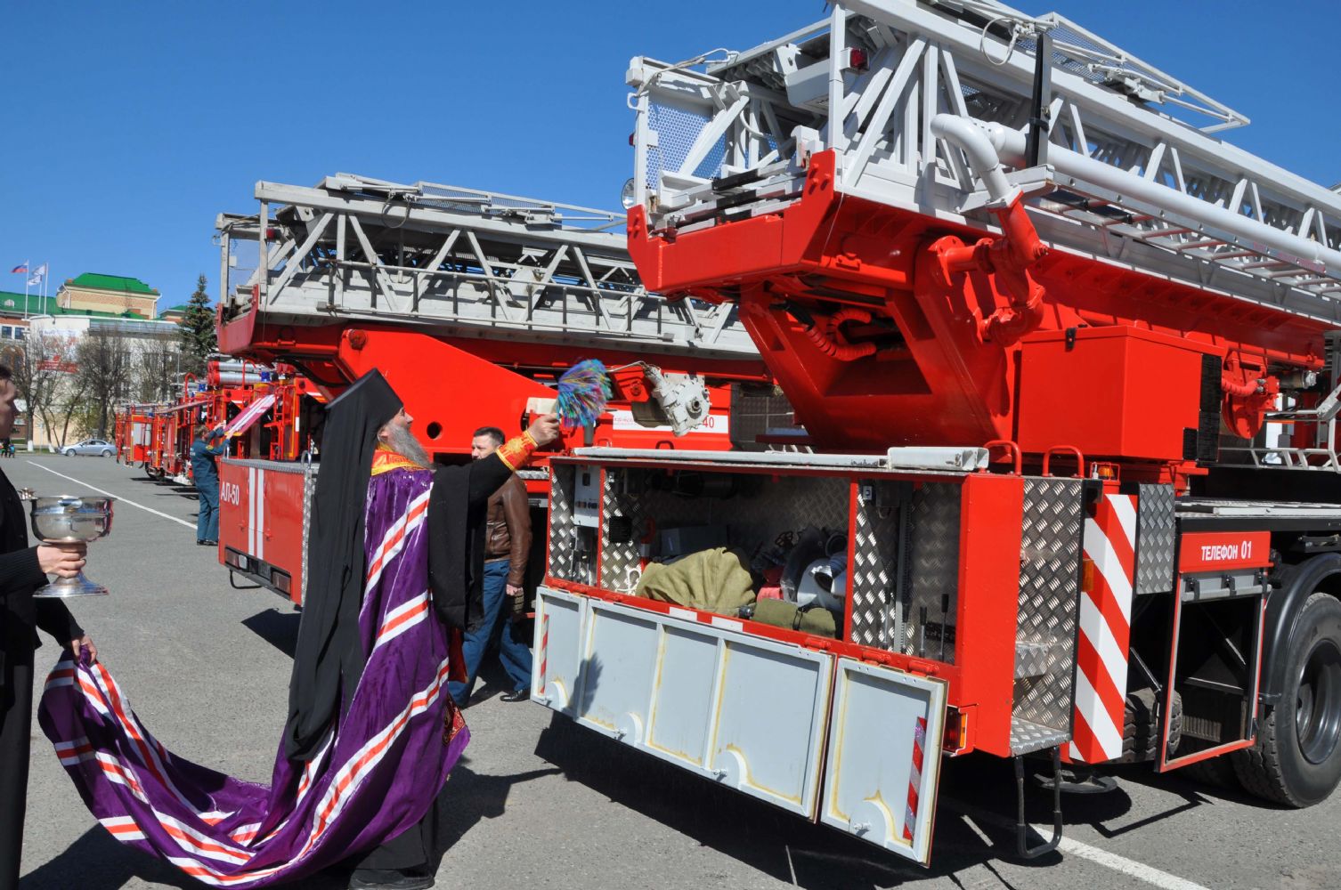 7 мая на площади Ленина города Йошкар-Олы архиепископ Йошкар-Олинский и Марийский Иоанн с клириками епархии совершили освящение автомобилей спасательного ведомства.
