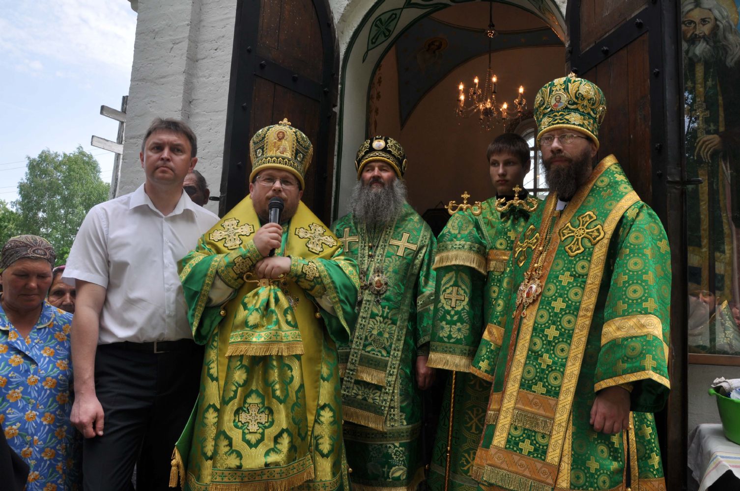 Его Высокопреосвященству сослужили клирики Яранской епархии: секретарь епархиального управления, благочинный Южного округа архимандрит Владимир (Дяченко), клирик Троицкого собора г. Яранска архимандрит Панкратий (Нагибин), ключарь Троицкого собора г. Яранска иеромонах Давид (Отрохов) и настоятель Троицкого храма с. Сорвижи протоиерей Михаил Ильницкий; а также клирики Йошкар-Олинской и Марийской епархии: благочинный Пригородного церковного округа, настоятель храма в честь иконы Божией Матери «Казанская» п. Нурма священник Александр Коваль и настоятель храма в честь иконы Божией Матери «Державная» п. Медведево, руководитель Миссионерского отдела епархии протоиерей Алексий Михайлов.