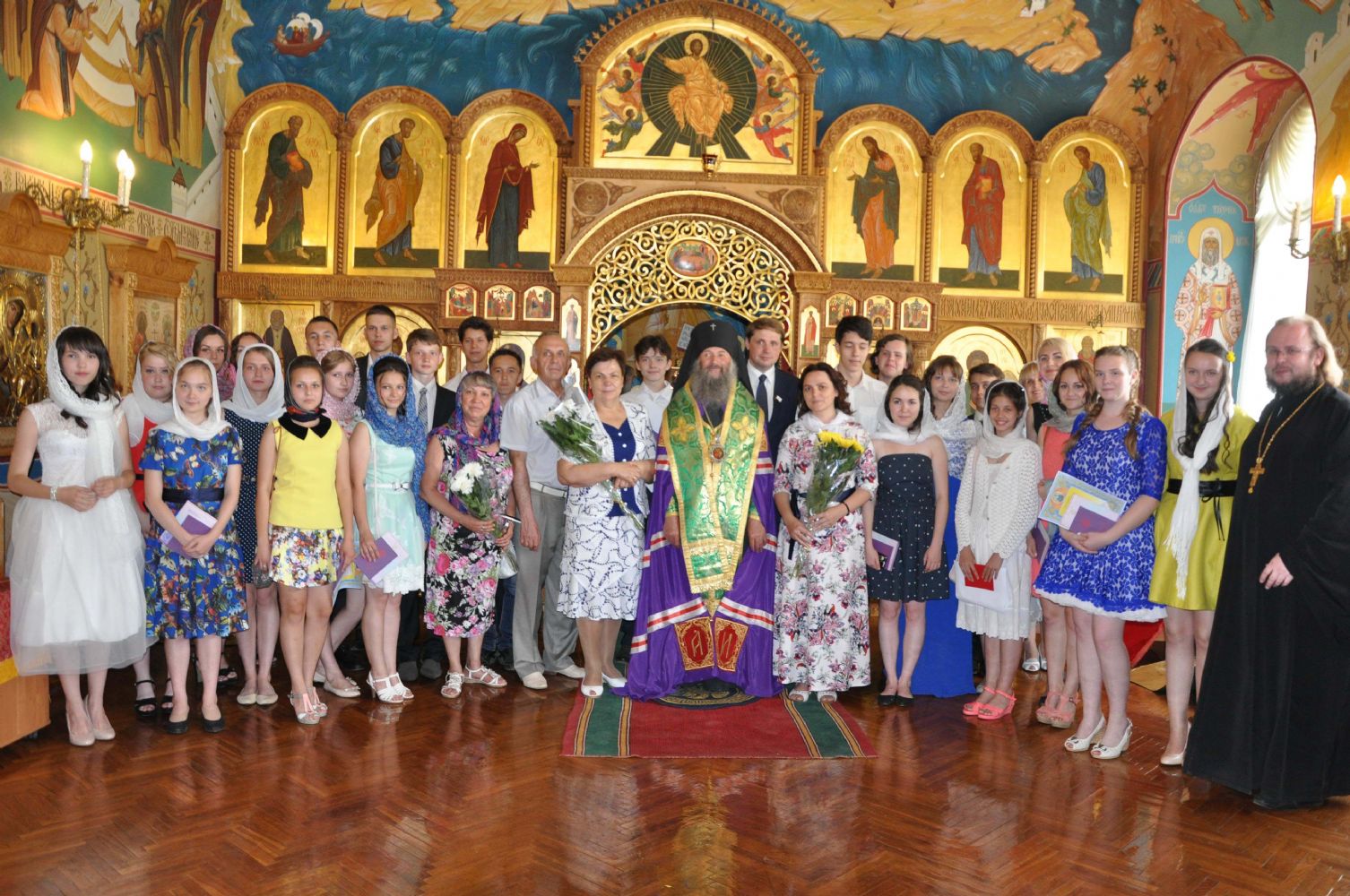 Вечером в 16 часов в Епархиальном домовом храме иконы Божией Матери «Троеручицы» Его Выоскопреосвященство совершил благодарственный молебен по случаю окончания обучения в православной гимназии имени прп. Сергия Радонежского.