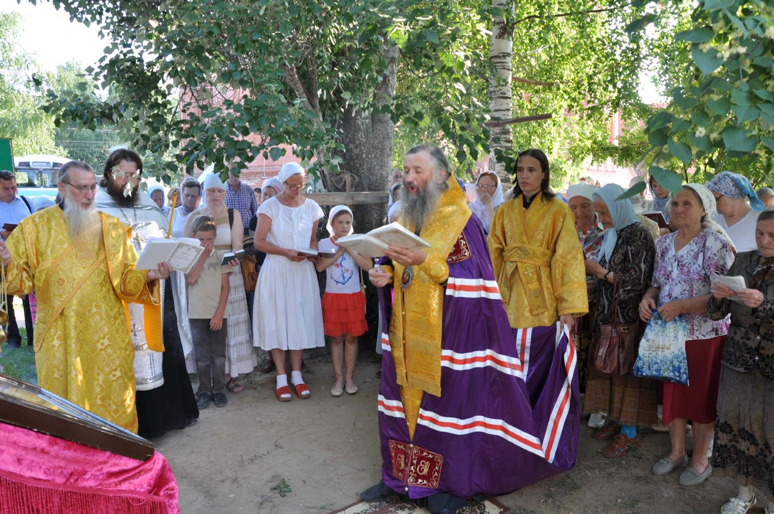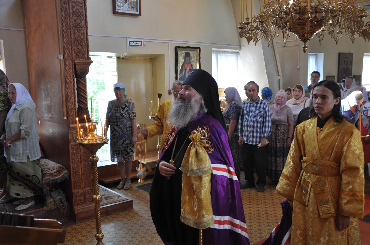 Полный храм верующих молился со своим Архипастырем и священниками. Много детей и взрослых причастились Святых Тайн. За праздничным молебном в честь святителей Николая Мирликийского и Ионы Московского был совершен крестный ход вокруг храма, Владыка обильно окроплял всех святой водой. После чего, на могилке бывшего настоятеля протоиерея Владимира Васильева были вознесены молитвы о упокоении его души и спета "Вечная память" .