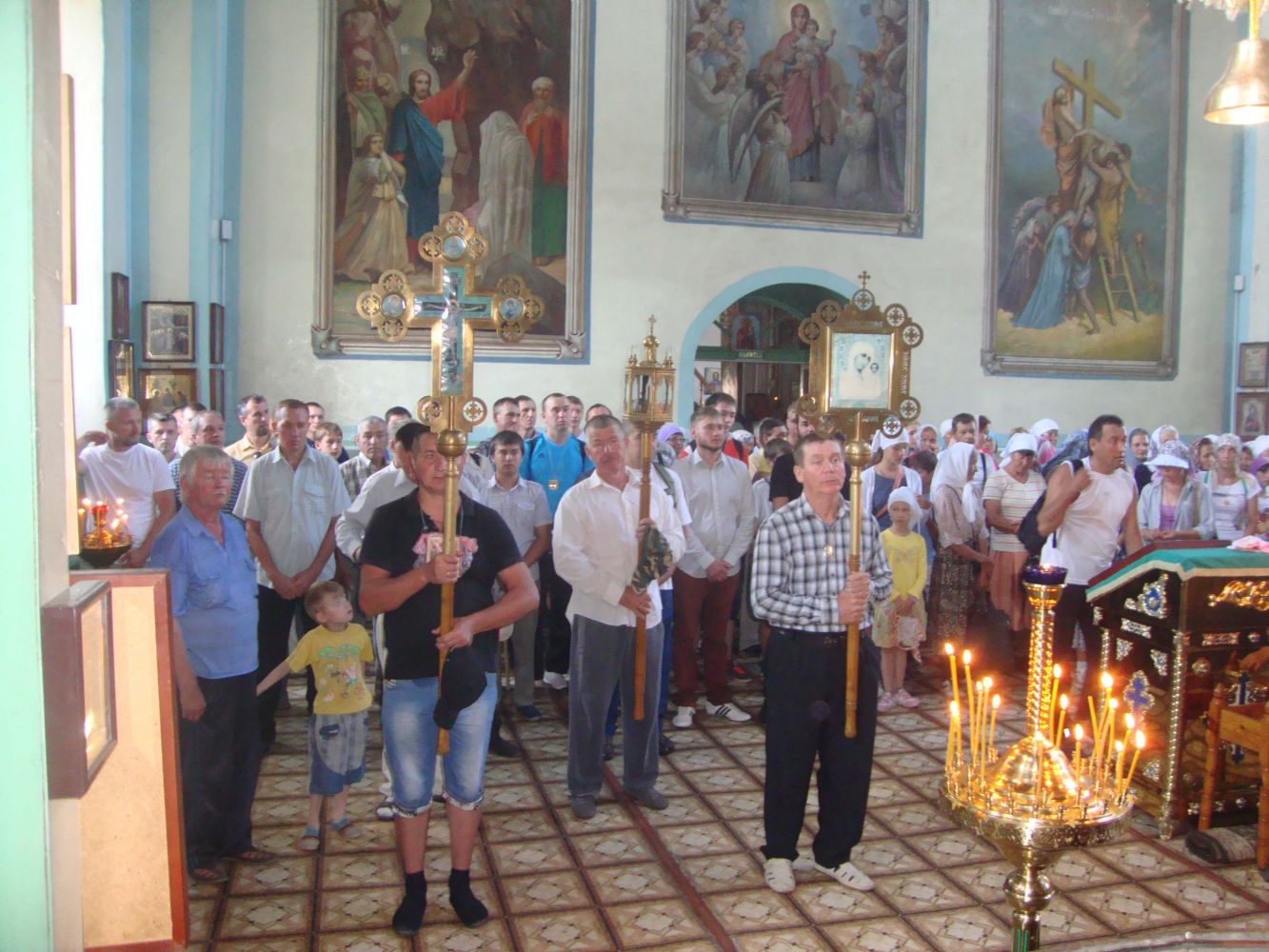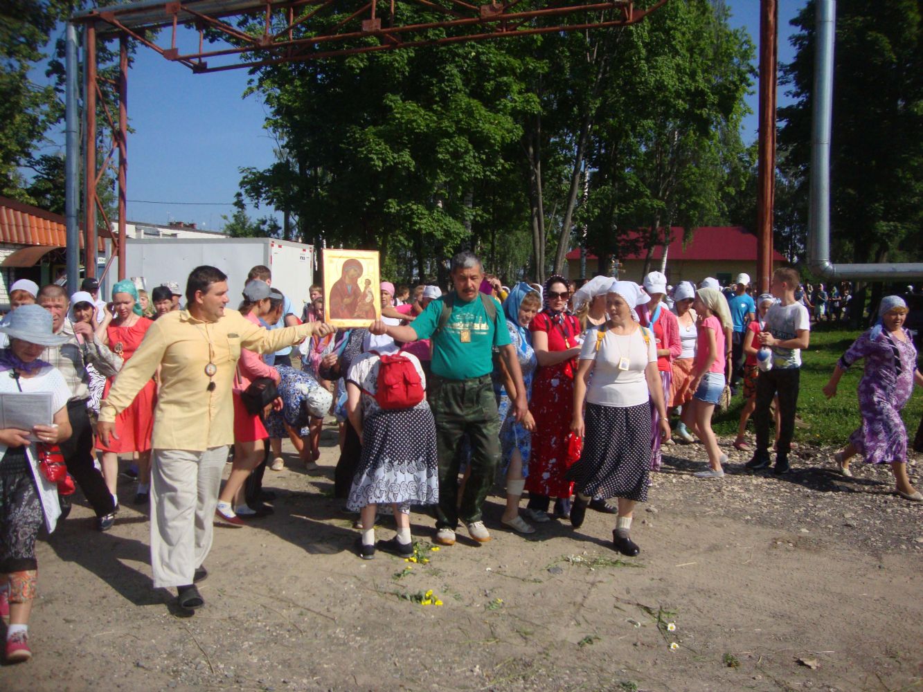 Перед образом Божией Матери «Грузинская» был совершен молебен, после чего и паломники с молитвой приложились к иконе. После общей трапезы и отдыха снова собрались в соборе. Отец Евгений помазал всех святым елеем, окропил святой водой и крестный ход отправился в обратный путь.