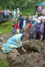 По прибытии на святой источник отец Алексий отслужил водосвятный молебен и окропил всех святой водой. Дети и взрослые благоговейно прикладывались к Владимирской иконе Божией Матери, установленной здесь в столбовой часовне, и набирали воды из источника. Организаторы крестного хода выражают надежду, что на будущий год его участников будет не меньше, ожидается и прибытие йошкаролинцев.