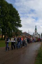 Во время трапезы хлынул дождь. Однако ко времени ее окончания, не иначе как по милости Божией, он перестал и юные участники крестного хода вместе со взрослыми двинулись в путь. Впереди шли дети с хоругвями, специально изготовленными для детского крестного хода, а виловатовцы привезли собственные.
