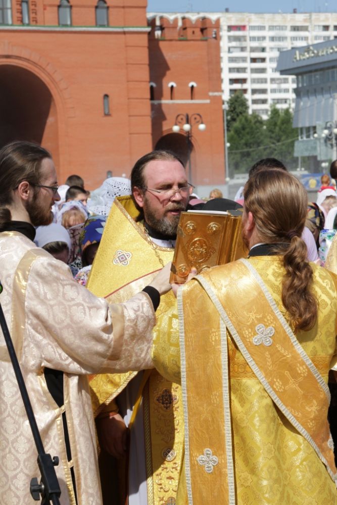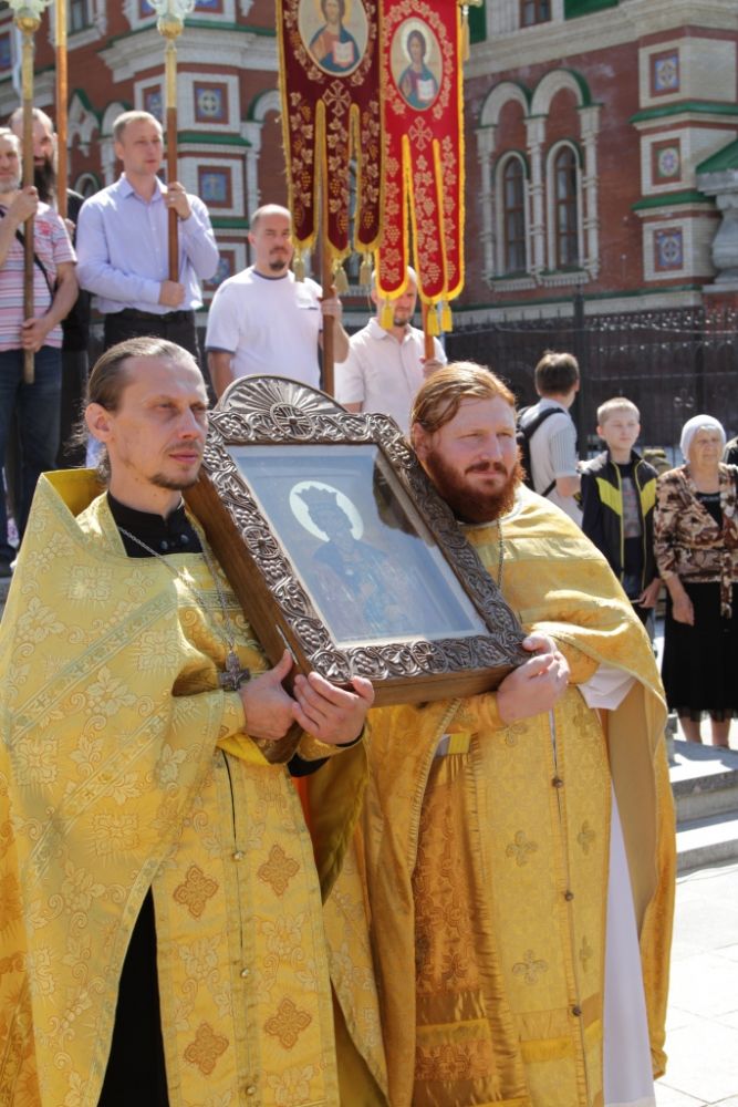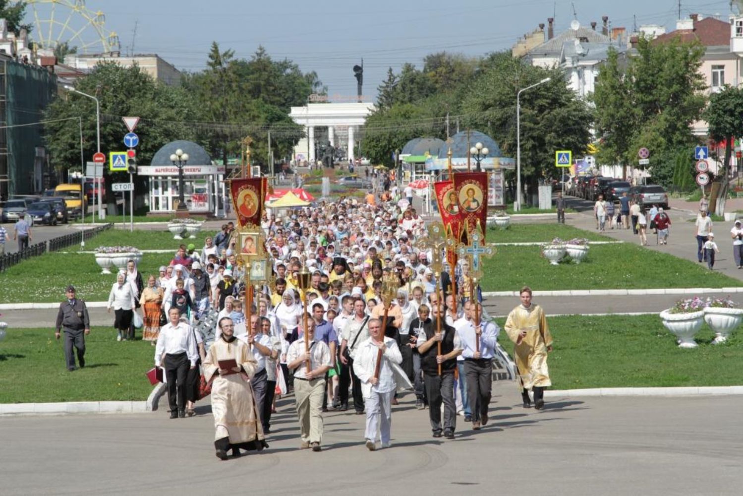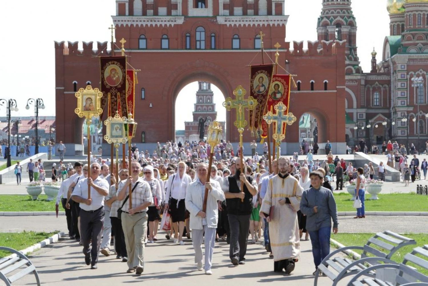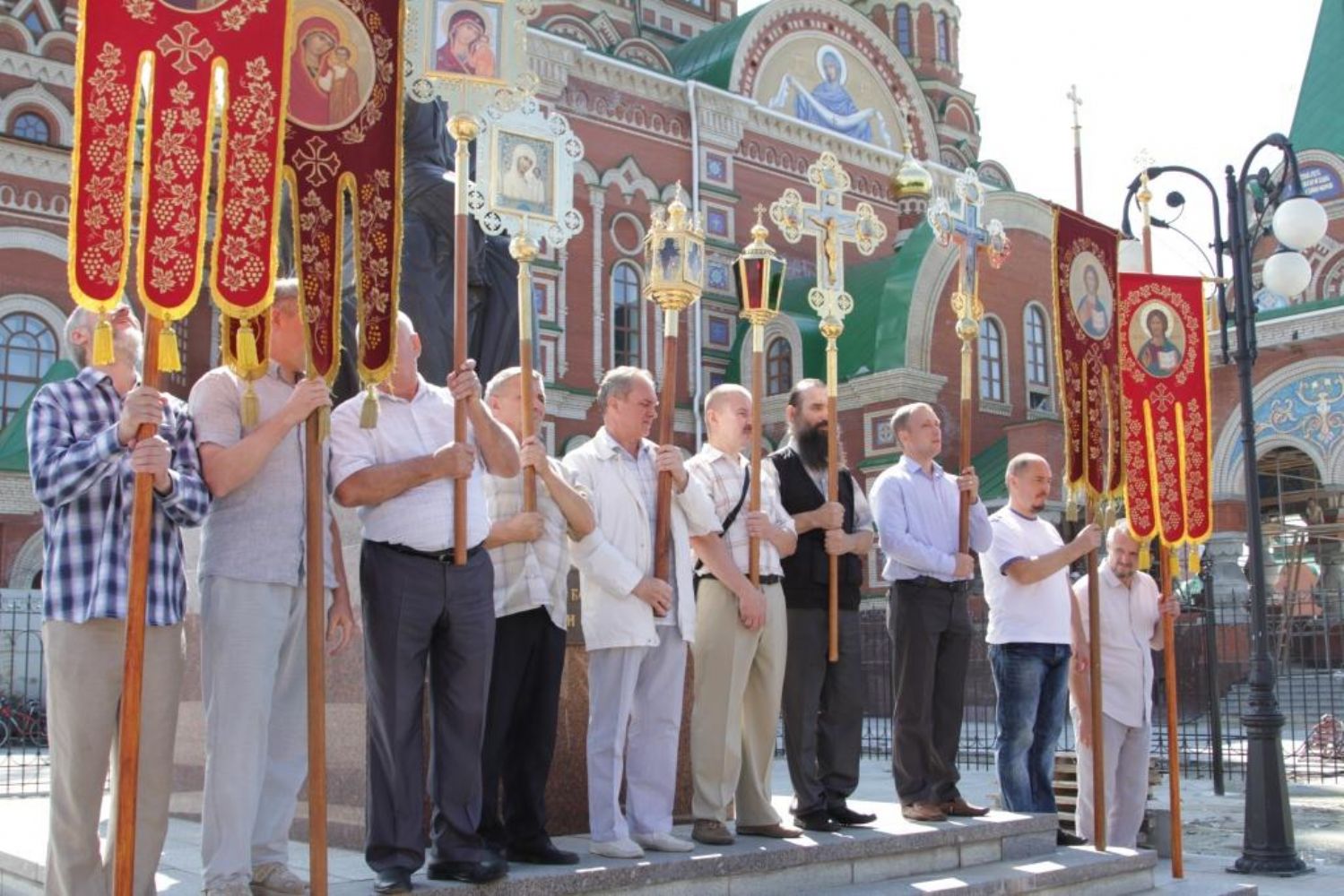 Молитвенное шествие одновременно началось в трех храмах города: в Вознесенском кафедральном соборе, Воскресенском соборе и храме в честь Успения Пресвятой Богородицы. Крестный ход прошел до площади Девы Марии к строящемуся Благовещенскому собору, где было совершено молебное пение в День Крещения Руси. Молебен по благословению архиепископа Йошкар-Олинского и Марийского Иоанна возглавил секретарь Епархиального управления иеромонах Серафим (Пасанаев). Ему сослужили настоятель Воскресенского собора, протоиерей Сергий Поглазов, настоятель храма Державной иконы Божией Матери протоиерей Алексий Михайлов, клирики Йошкар-Олинской и Марийской епархии. На площади перед собором собралось около 1000 верующих, пришедших почтить память равноапостольного князя.