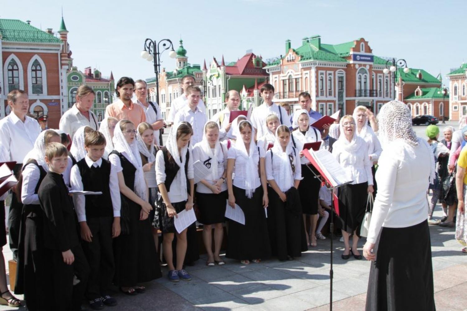 Молебен, совершаемый в День Крещения Руси, сопровождался пением сводного хора Йошкар-Олинского благочиния под управлением регента Вознесенского собора Ангелины Бабиной. Сводный хор собирается в этот праздник уже второй раз специально по случаю торжества.