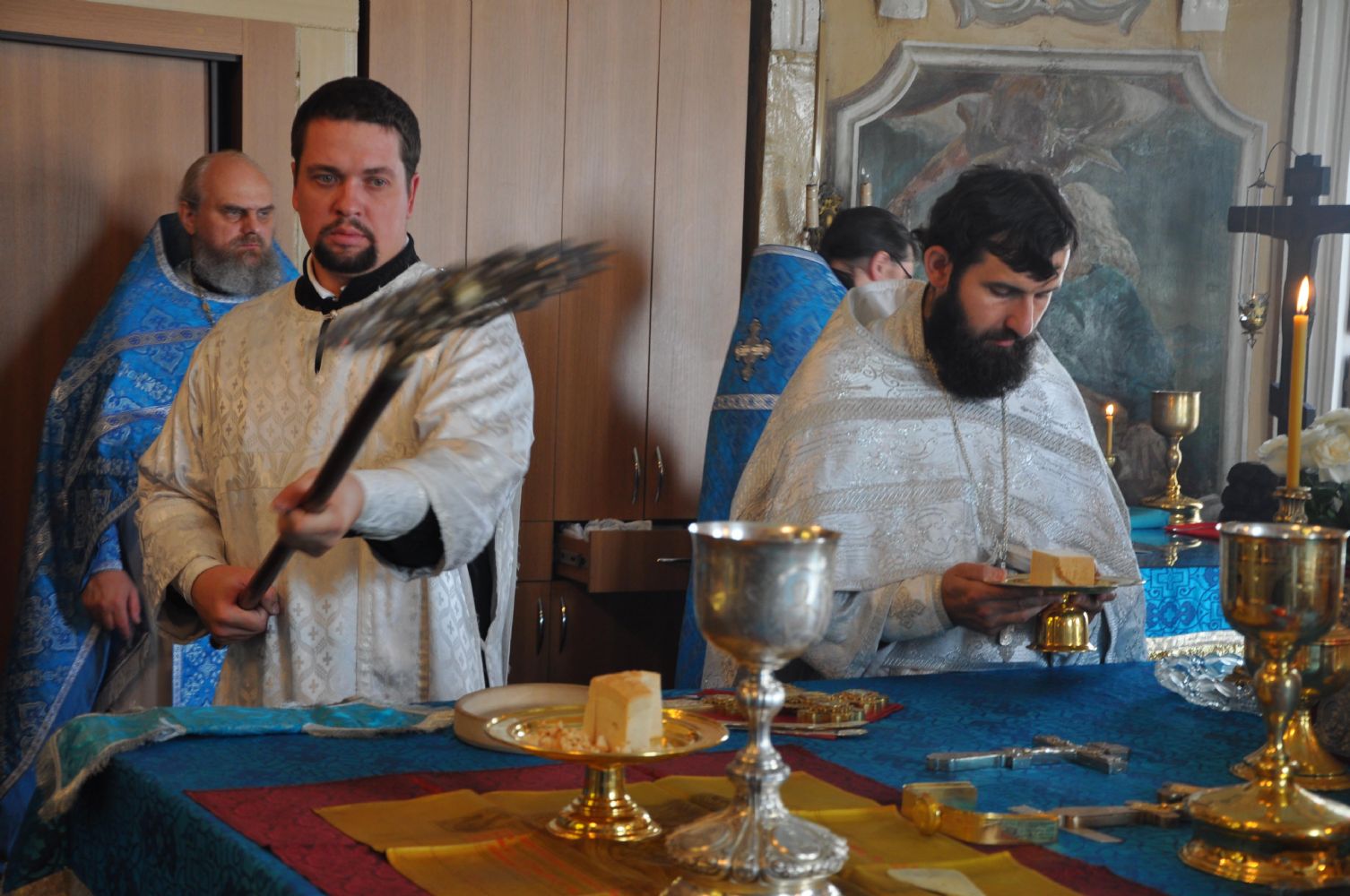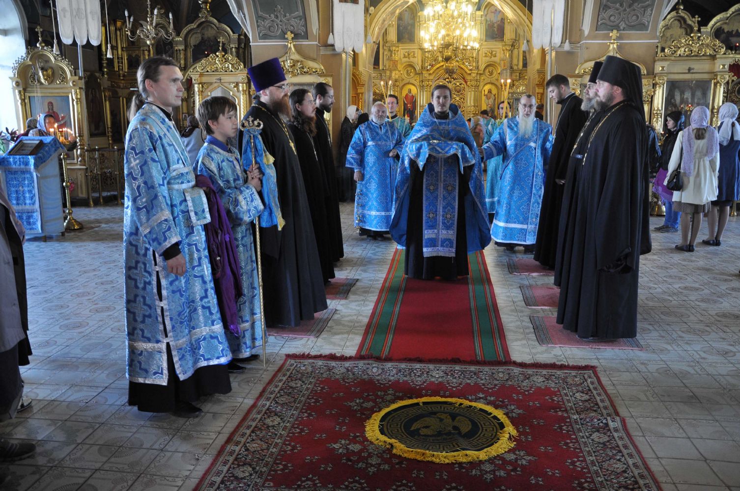 Владыке сослужили: секретарь епархии иеромонах Серафим (Пасанаев), настоятель храма протоиерей Сергий Поглазов и клирик храма иерей Алексий Кирюшкин.