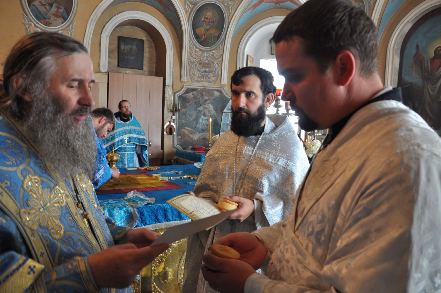 21 сентября за Божественной литургией в том же храме Владыка совершил две хиротонии. Выпускник Владимирской Духовной семинарии диакон Никита Смирнов рукоположен во священника, а студент III курса Владимирской Духовной семинарии Алексий Кузнецов рукоположен во диакона. Сорокоуст новорукоположенные священнослужители будут проходить в Воскресенском соборе г. Йошкар-Олы.
