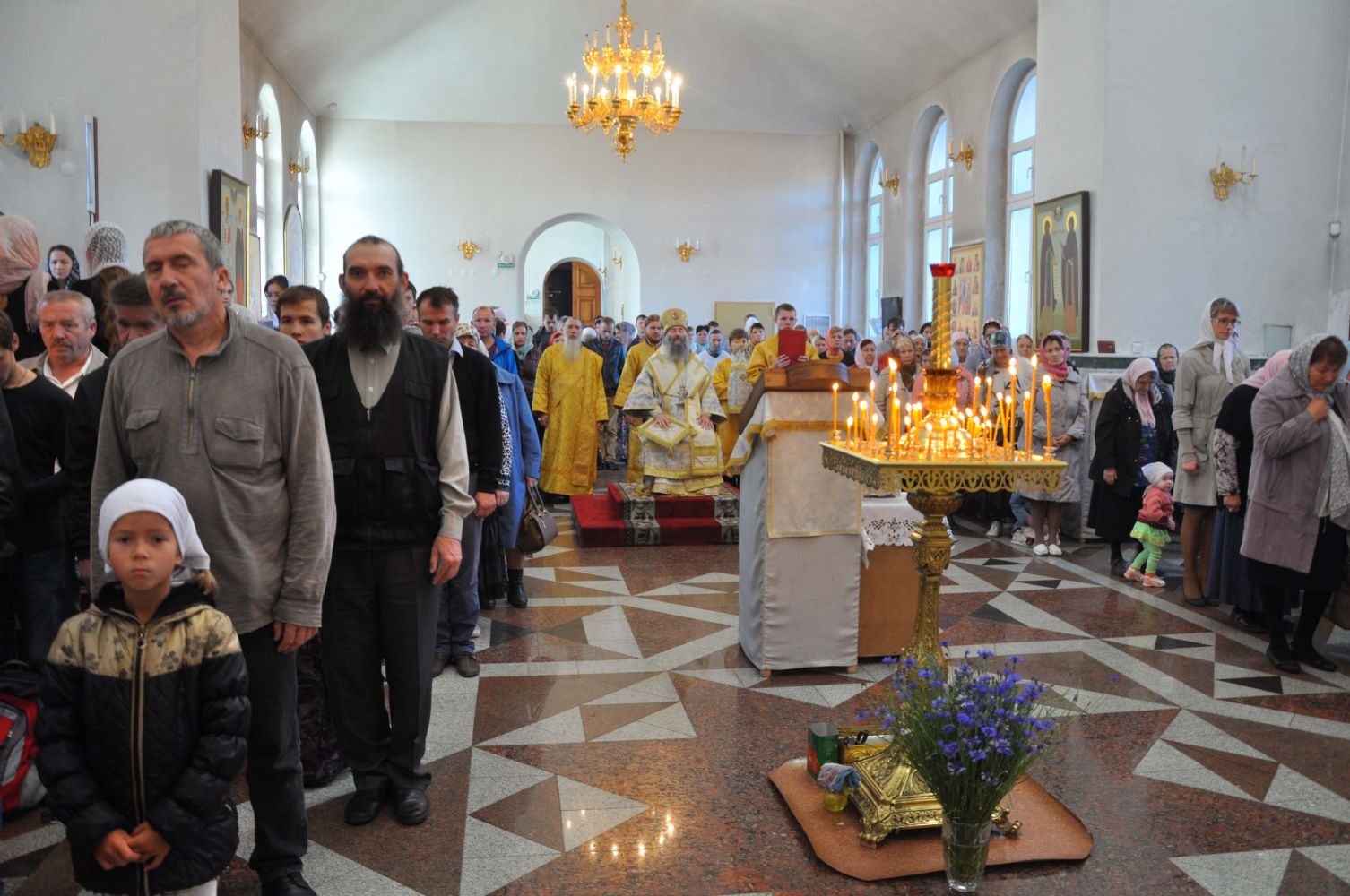 Всенощное бдение и Божественную литургию в Неделю 16-ю по Пятидесятнице, пред Воздвижением, предпразднство Рождества Пресвятой Богородицы, Его Высокопреосвященство совершил в Воскресенском соборе г. Йошкар-Олы.