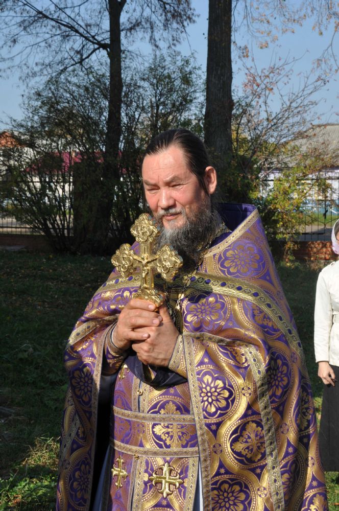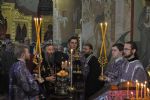 Владыке сослужили: секретарь епархии иеромонах Серафим (Пасанаев), благочинный Йошкар-Олинского церковного округа, настоятель собора митрофорный протоиерей Евгений Кутырев и клирики храма: иереи Андрей Норкин, Иоанн Кристев и Олег Большаков. После великого славословия Владыка совершил чин Воздвижения Креста.