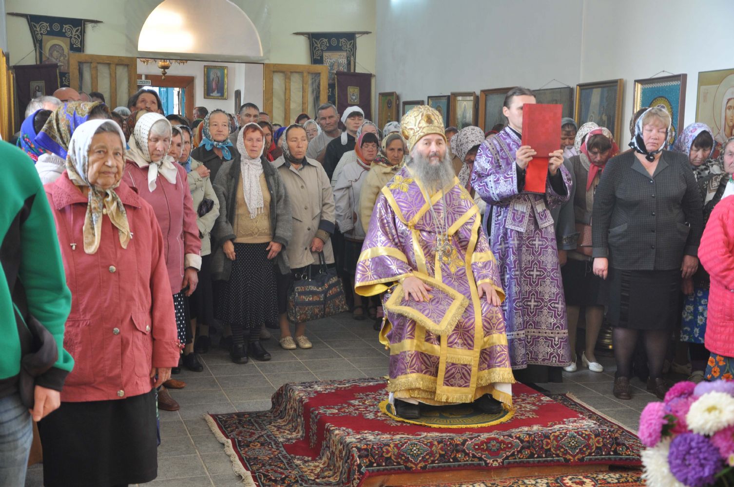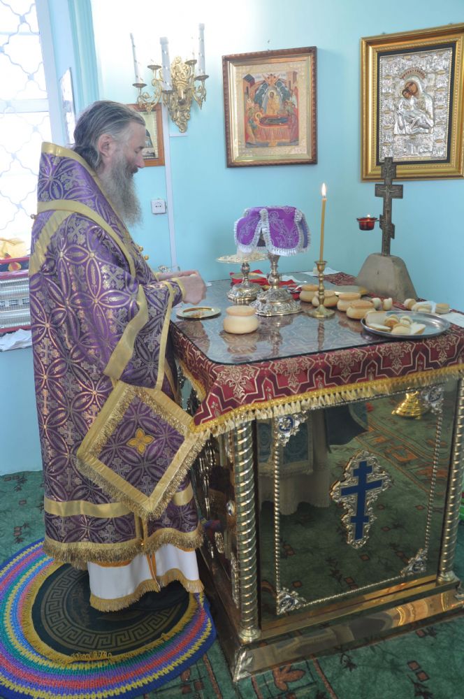 По окончании богослужения Владыка обратился к собравшимся с архипастырским словом, поздравив всех с престольным праздником и напомнил историю обретения Креста Господня святой равноапостольной царицей Еленой, матерью императора Константина.