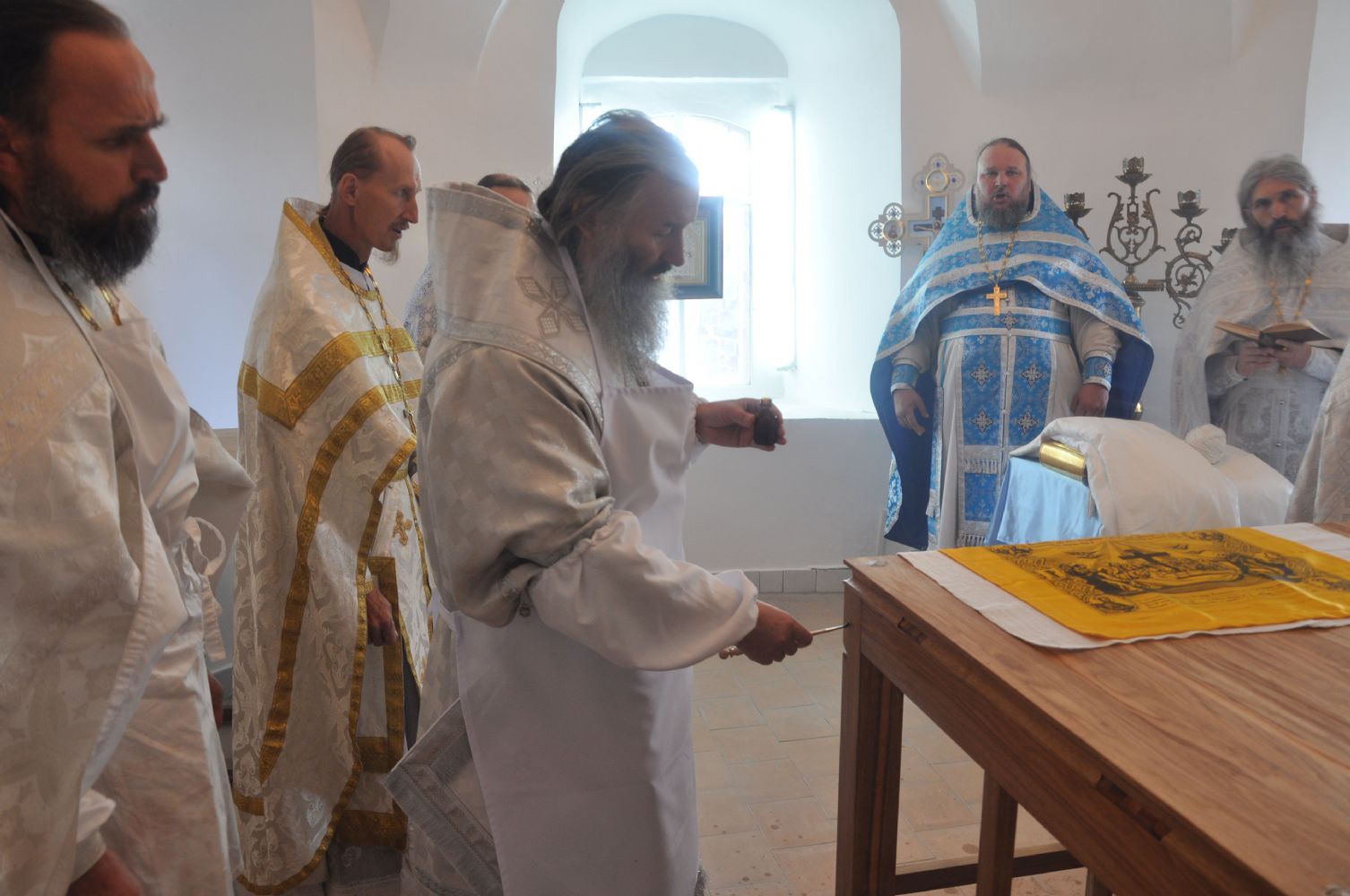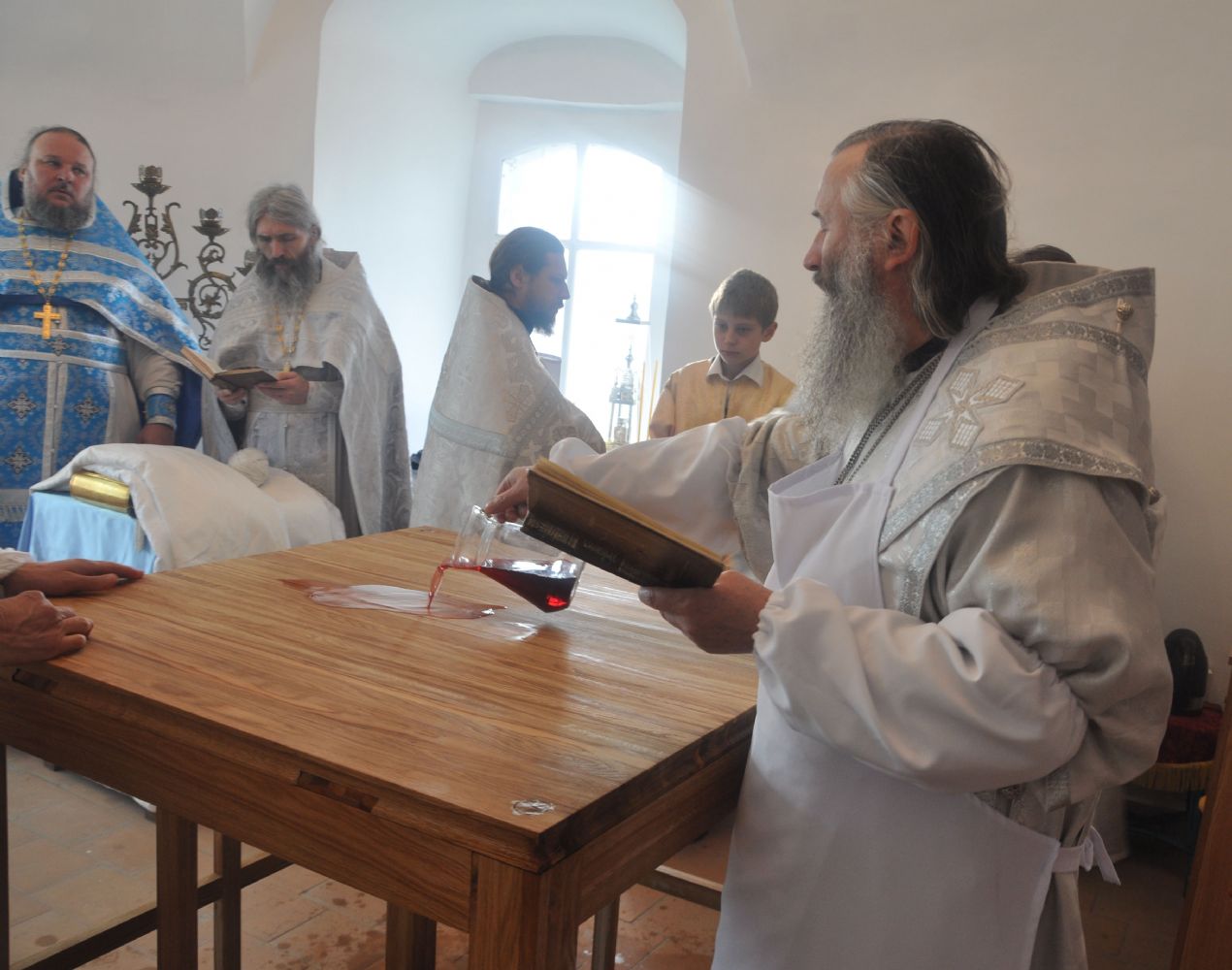 За богослужением Архипастырю сослужили: секретарь епархии иеромонах Серафим (Пасанаев), настоятель храма иерей Алексий Леонов, благочинный Лугово-Марийского церковного округа, настоятель храма в честь святителя Николая Мирликийского чудотворца с. Кожла-Сола протоиерей Алексий Никитин, благочинный Пригородного церковного округа, настоятель храма в честь иконы Божией Матери «Казанская» с. Нурма иерей Александр Коваль, настоятель храма в честь Покрова Пресвятой Богородицы с. Эмеково протоиерей Евгений Усков, настоятель храма в честь Рождества Христова с. Арино протоиерей Николай Чузаев и настоятель Свято-Троицкого храма с. Красный Яр иерей Михаил Репин.