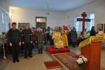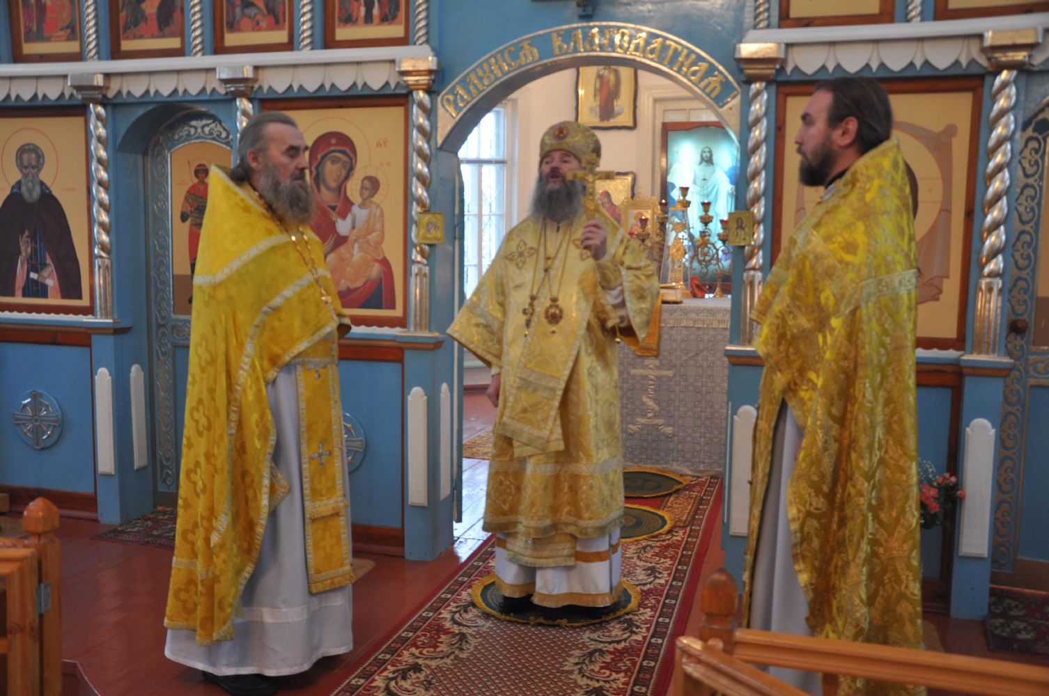 В храме в честь Покрова Пресвятой Богородицы Владыка возглавил Божественную литургию в сослужении настоятеля храма протоиерея Валентина Пылаева и секретаря епархии иеромонаха Серафима (Пасанаева). По окончании Литургии был совершен молебен.