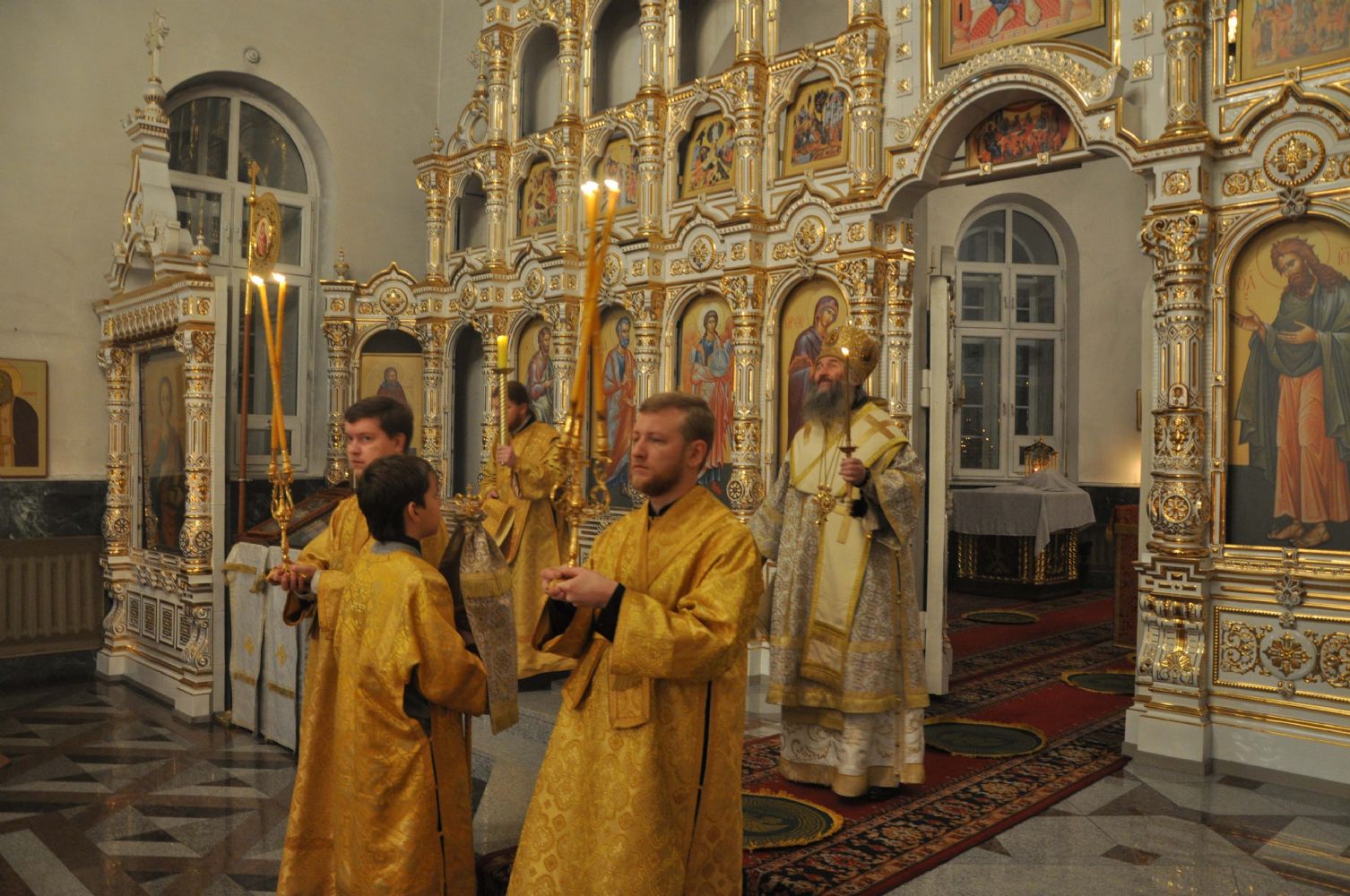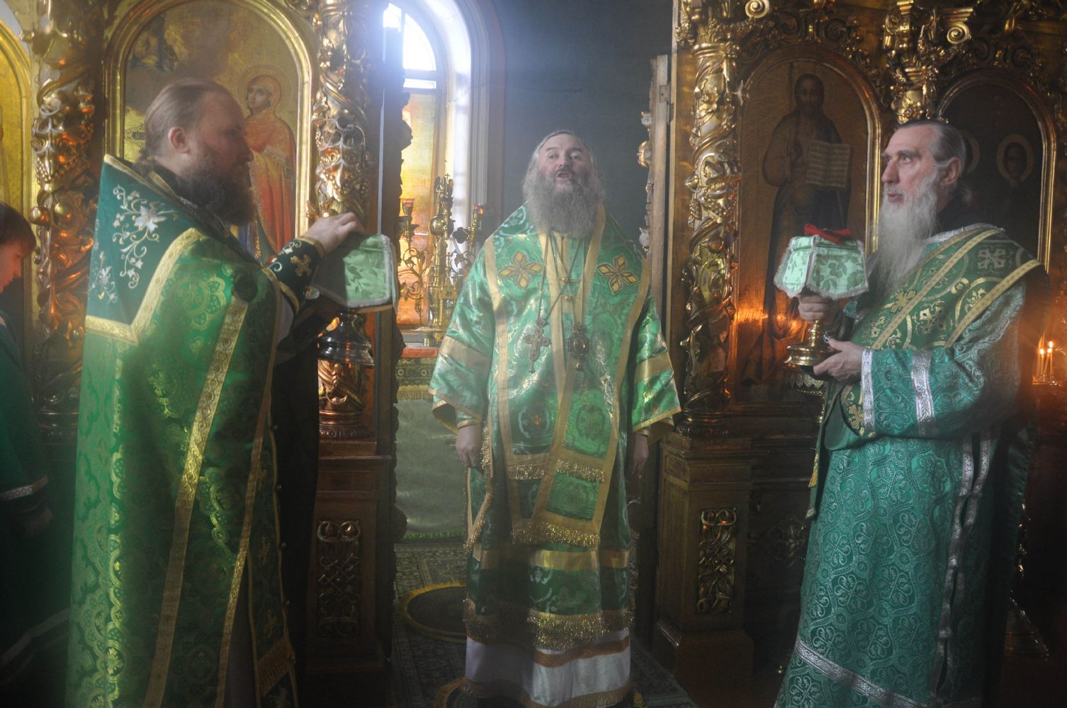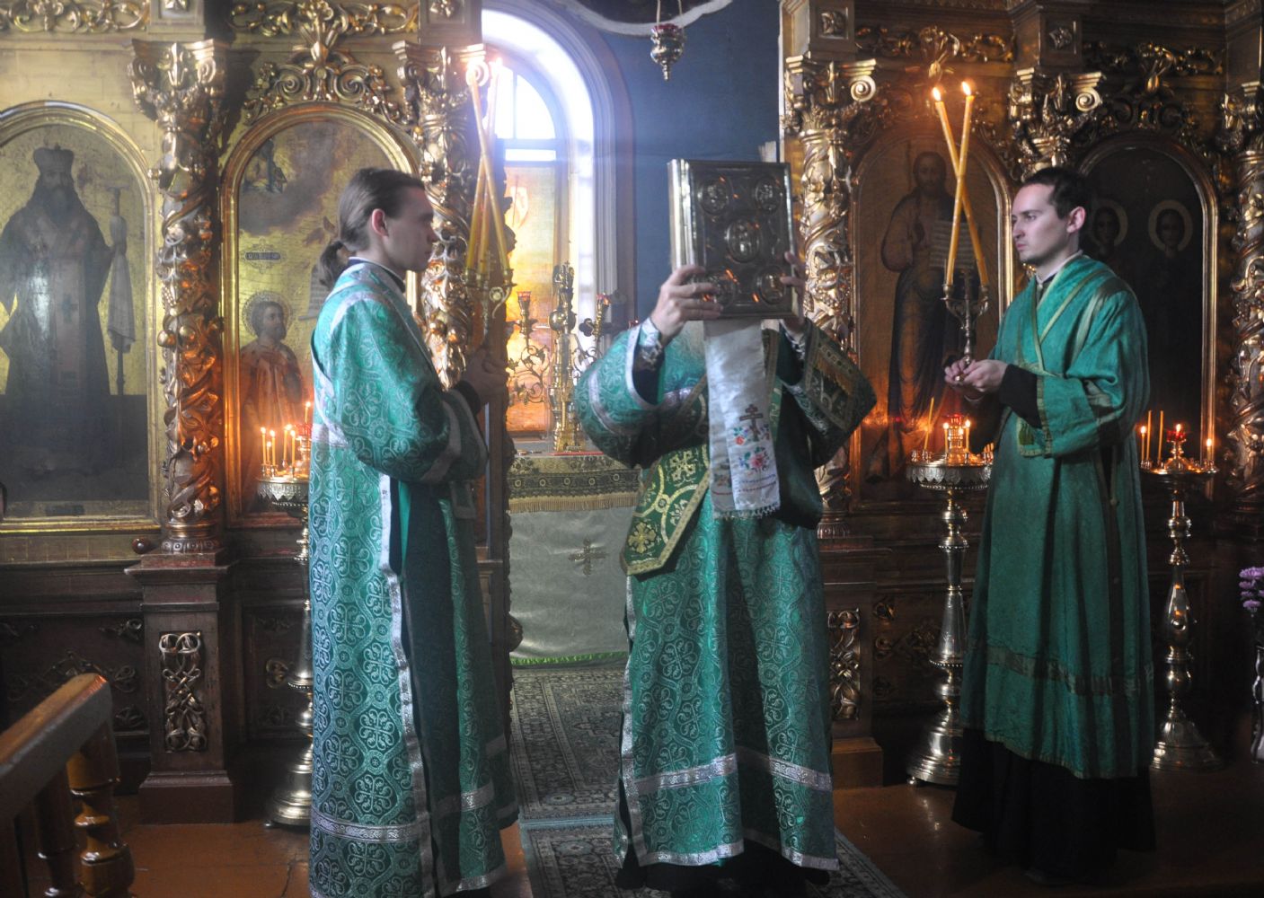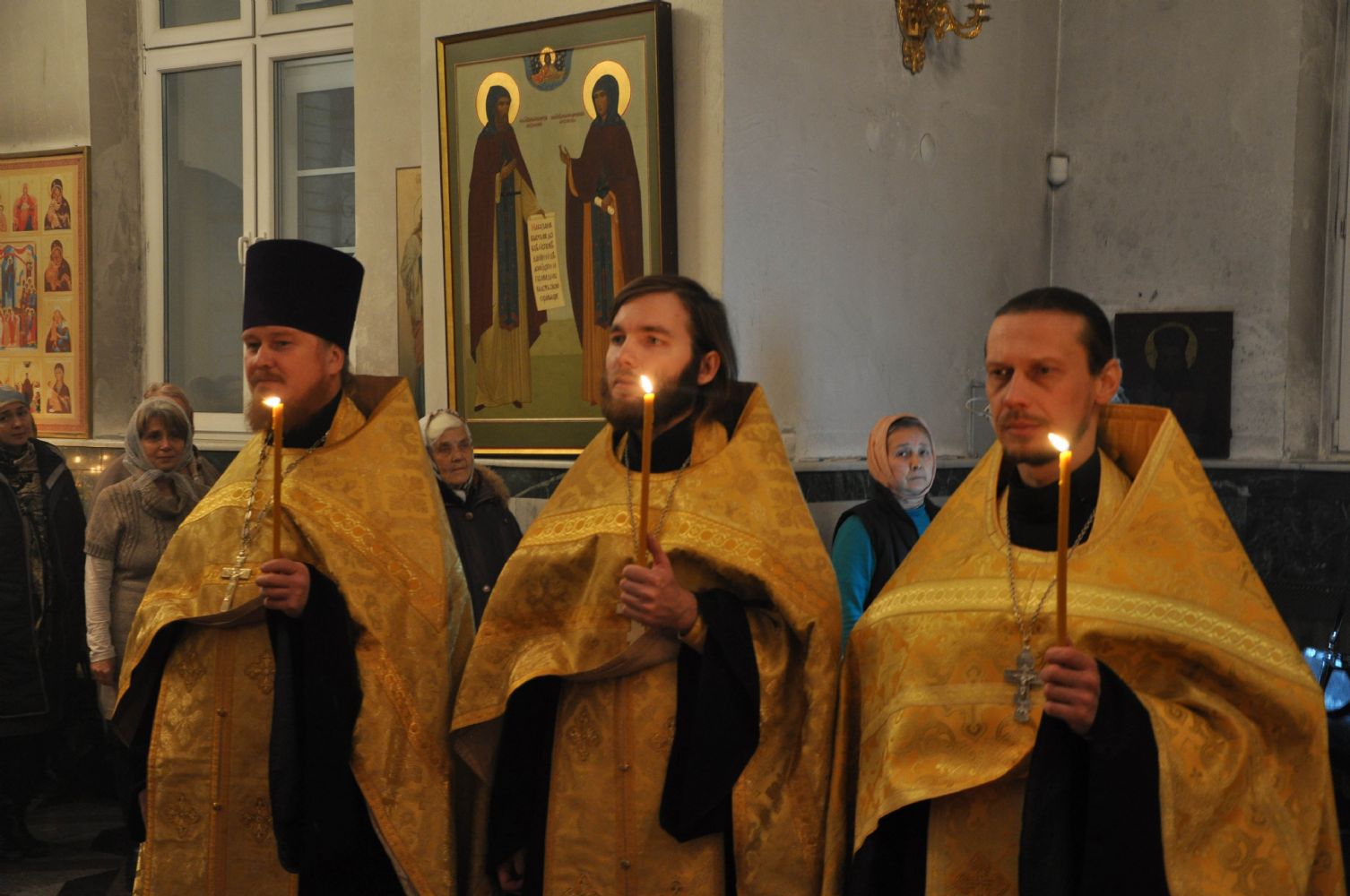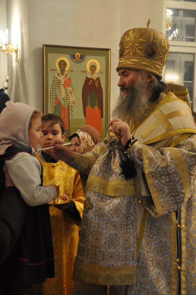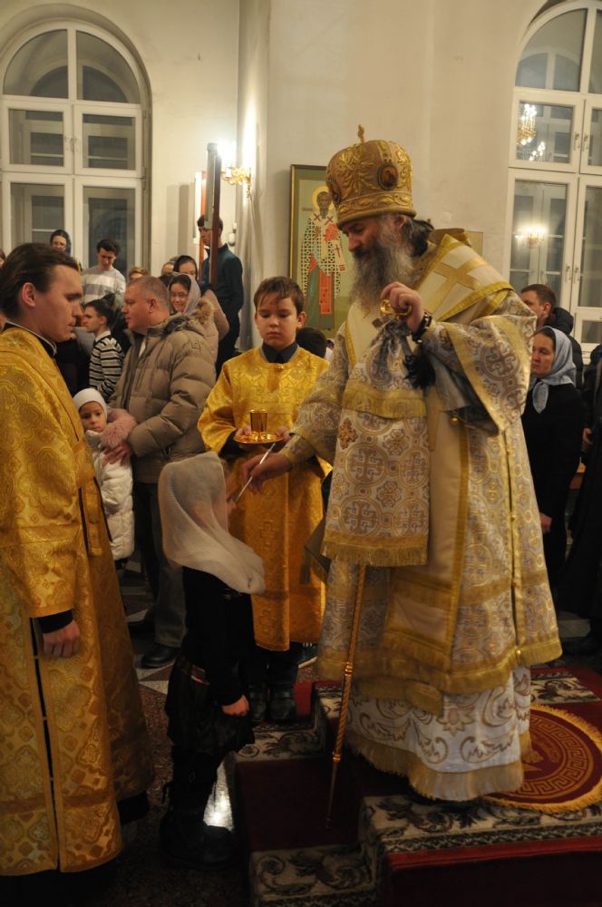 Вечером того же дня Владыка совершил Всенощное бдение в Воскресенском соборе г. Йошкар-Олы в сослужении секретаря епархии иеромонаха Серафима (Пасанаева), настоятеля храма протоиерея Сергия Поглазова и клириков храма.