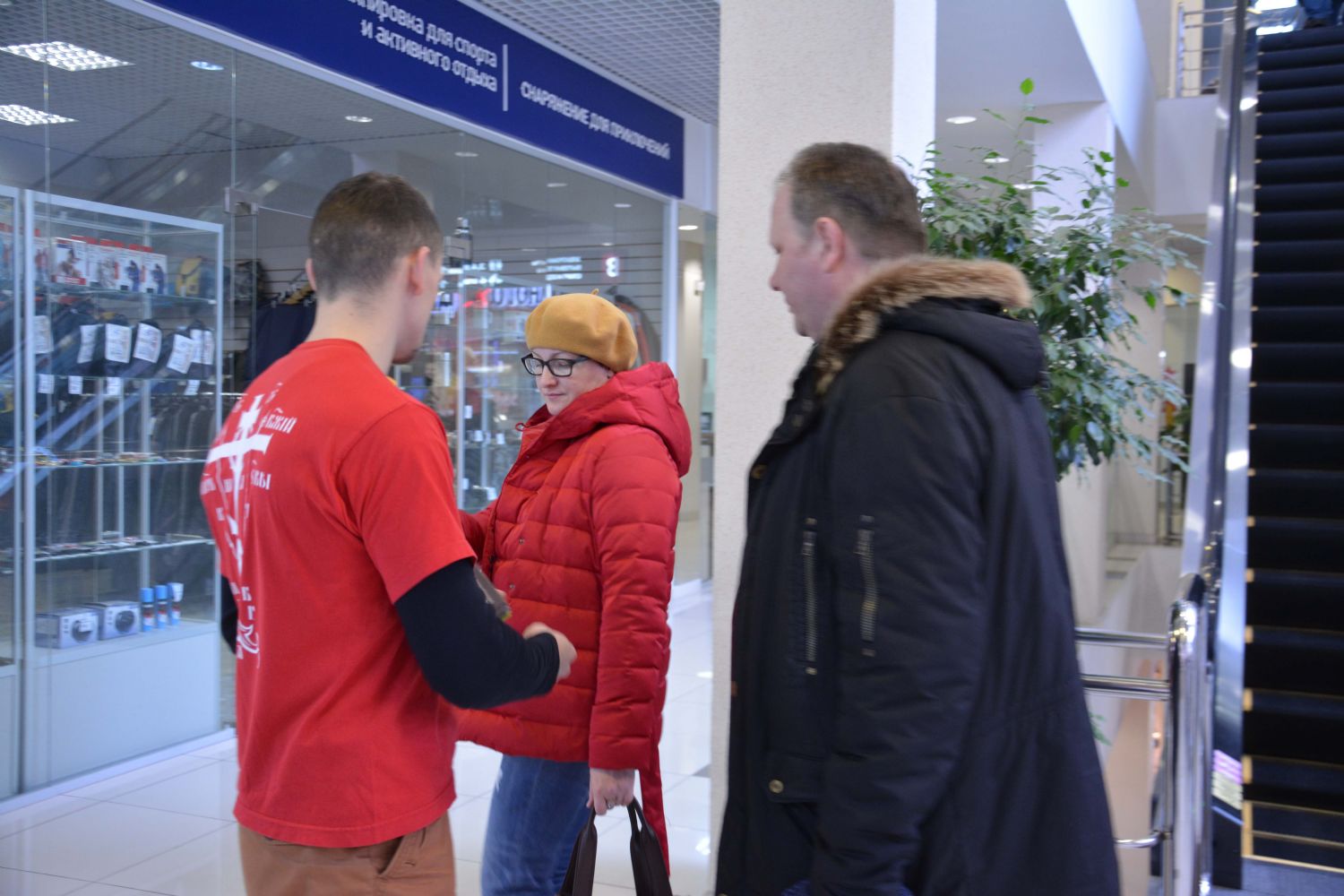 В ТЦ «Планета» добровольцы, представители волонтерских организации и сотрудники Отдела социального служения и церковной благотворительности Йошкар-Олинской и Марийской епархии раздавали посетителям ТЦ листовки и рассказывали об этой акции.