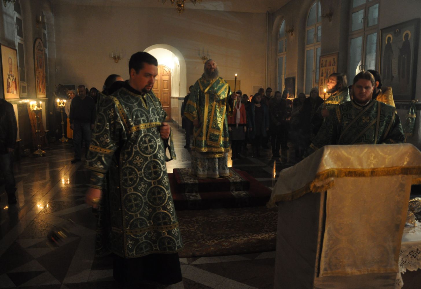 Вечером того же дня, накануне празднования Матфея Яранского, Владыка в сослужении клириков храма совершил Вечерню с чтением акафиста преподобному Матфею в Воскресенском соборе г. Йошкар-Олы.