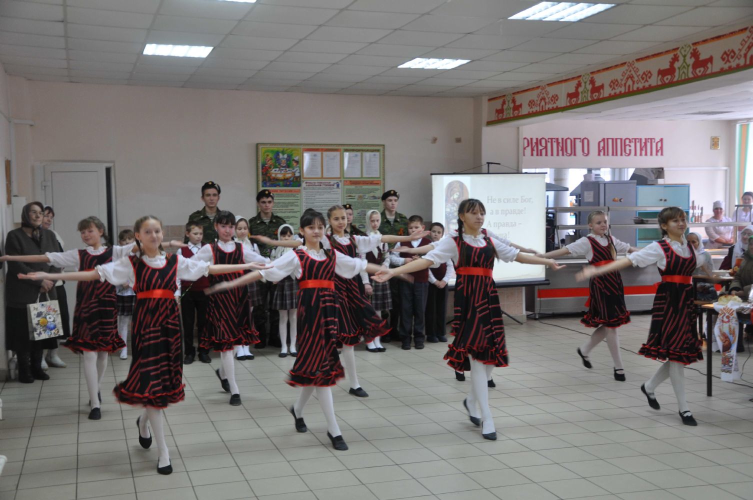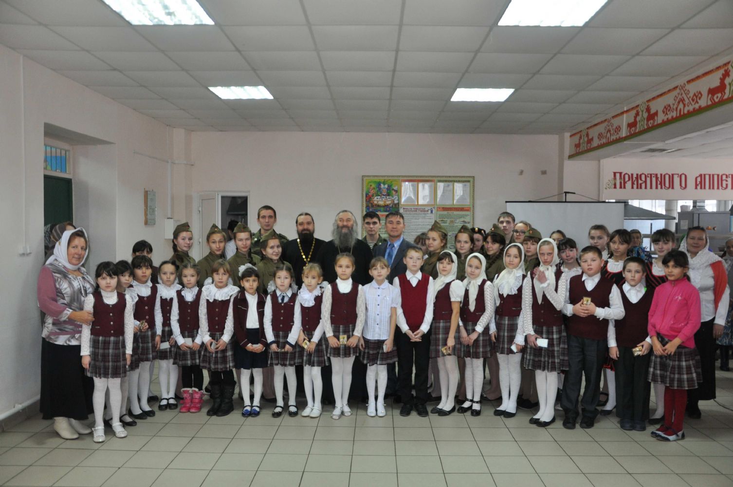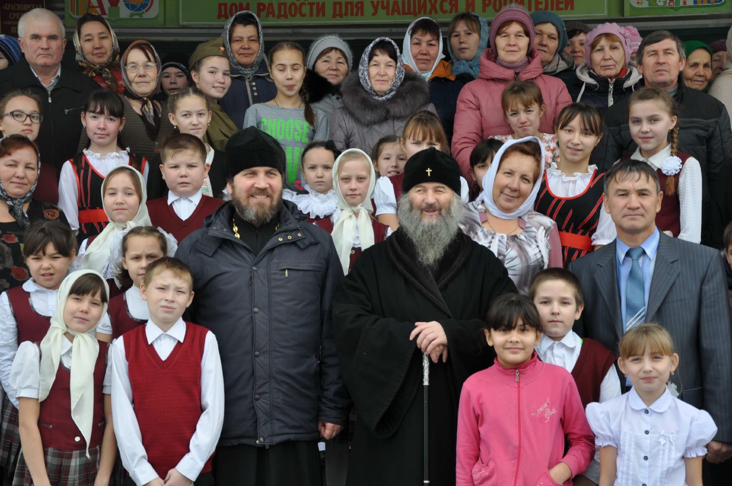 После богослужения, по традиции, Владыка Иоанн посетил Красноярскую среднюю общеобразовательную школу. Здесь, в молебной комнате, был совершен молебен в честь святых равноапостольных Кирилла и Мефодия, учителей Словенских. Учащиеся школы выступили перед Его Высокопреосвященством и гостями с концертом, посвященным святому Александру Невскому, память которого праздновалась в этот день. Директор школы В.Г. Кашков поблагодарил Владыку и пожелал ему крепкого здоровья, долгих лет, духовных сил для дел на благо нашего Отечества.