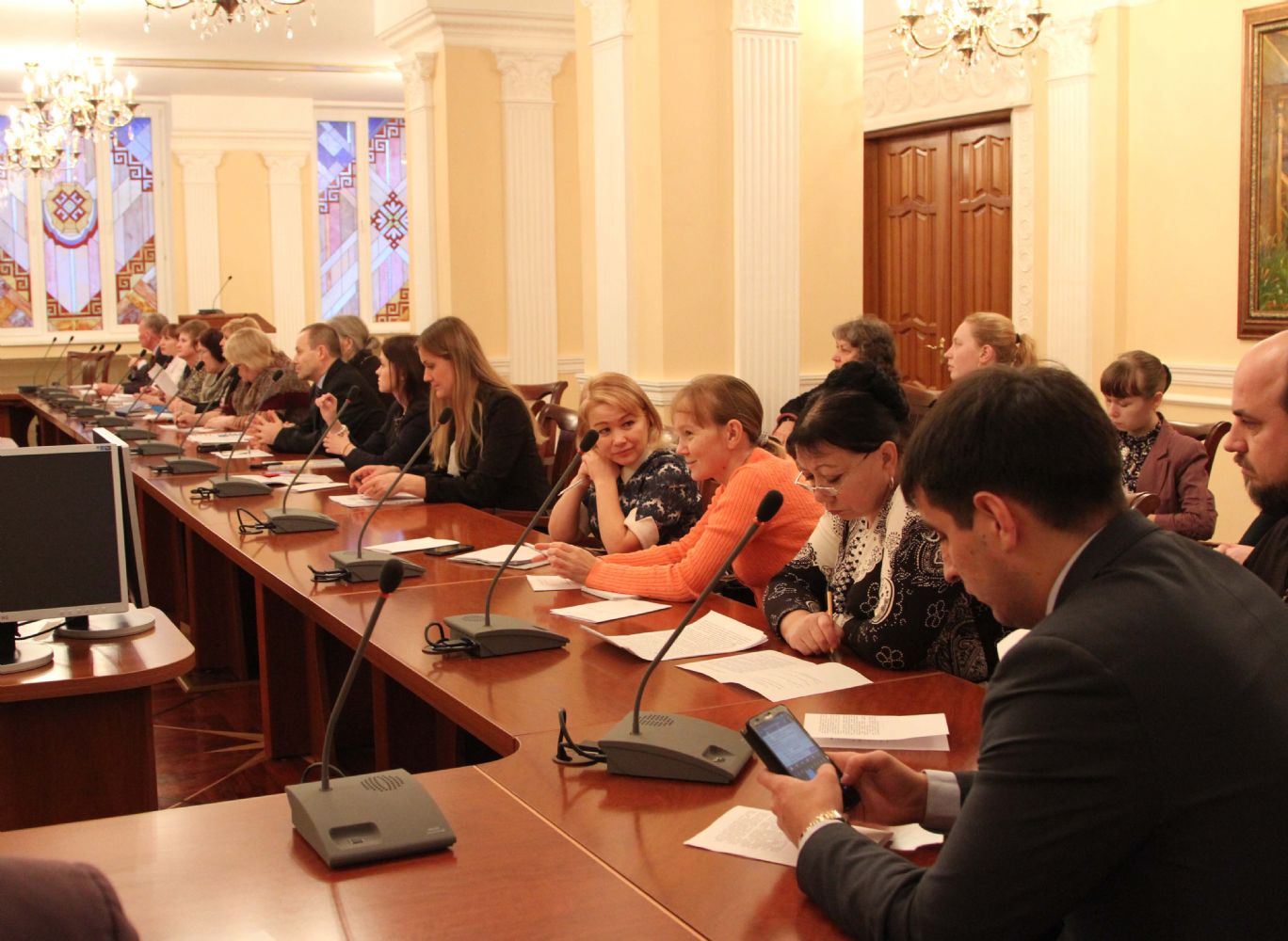 Открыл заседание заместитель Председателя Правительства РМЭ, министр культуры, печати и по делам национальностей М. З. Васютин. Он отметил, что подобная встреча, в формате круглого стола, проводится впервые. «Заявленная тема – это предмет обсуждения не одного века, не одного дня… Сегодня мы часто слышим слово «кризис», но чаще оно ассоциируется с экономикой. Но очень редко сейчас говорят о кризисе духовности, который гораздо опаснее и страшнее для существования любого государства», — подчеркнул Михаил Зиновьевич.