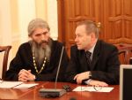 Первая тема, поднятая для обсуждения, звучала как: «Создание условий по сохранению духовного и культурного наследия». О соработничестве Церкви, Государства и общества в сохранении духовного и культурного наследия рассказал один из руководителей круглого стола иерей Андрей Норкин, ответственный в Епархии за взаимоотношения с Государством и обществом.