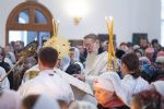 Многочисленные верующие разделили с архиереем и священнослужителями радость открытия нового дома Божия. Как накануне освящения — во время Всенощного бдения, так и во время чина освящения и Божественной литургии храм был переполнен.