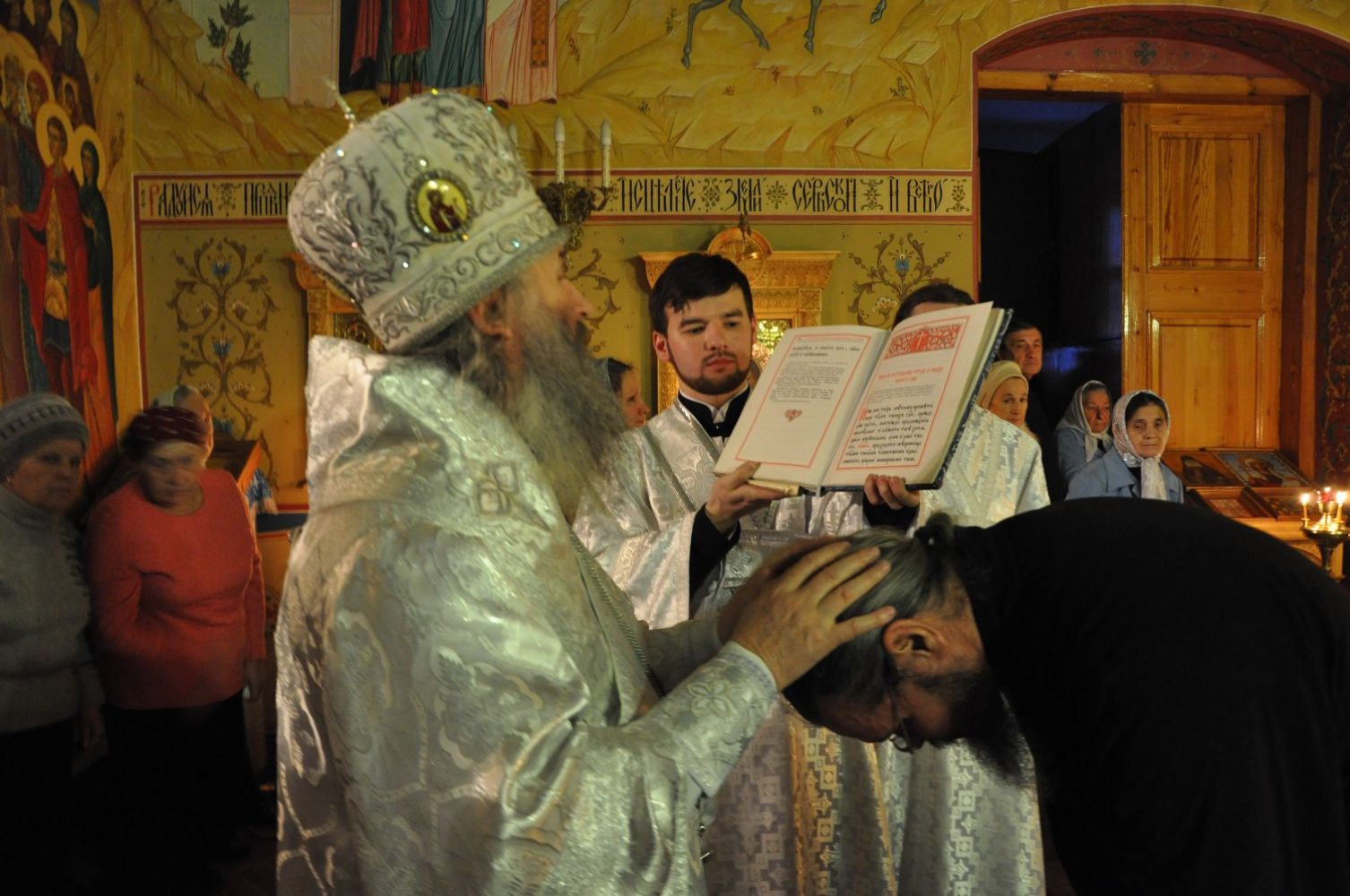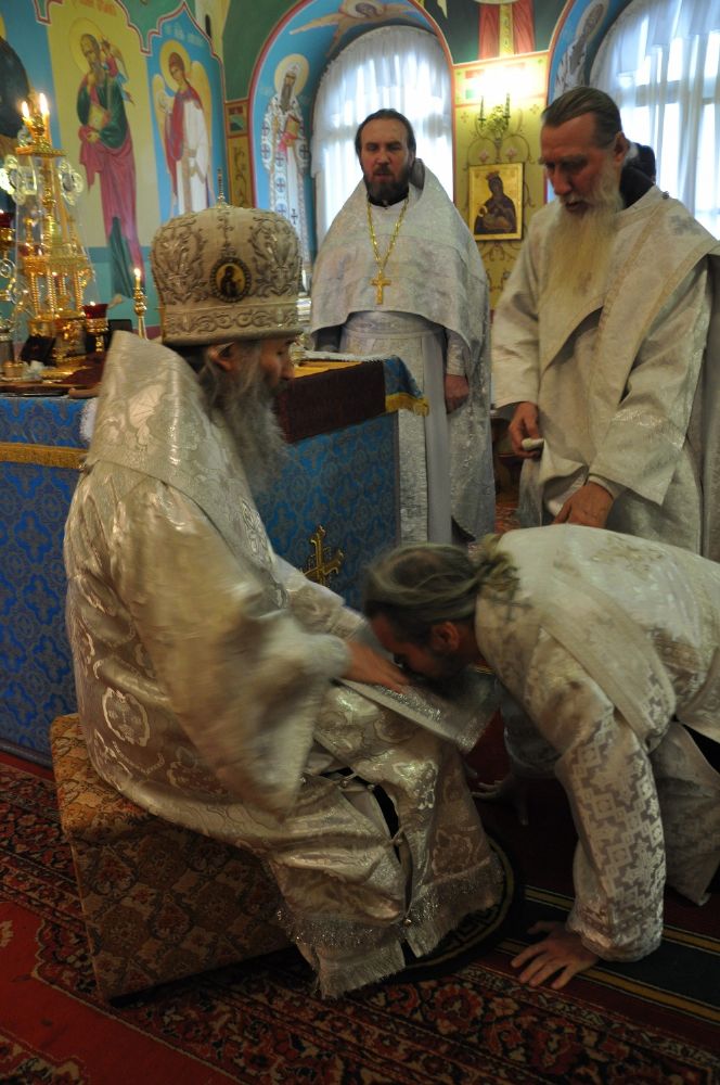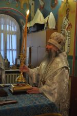 Владыке сослужил секретарь Епархиального управления иеромонах Серафим (Пасанаев). Богослужебные песнопения исполнил детско-юношеский хор «Благовест» под управлением регента Татианы Черновой.